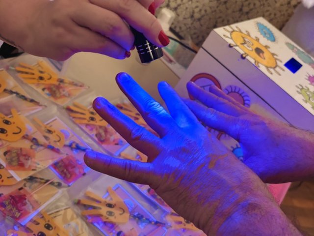 Além disso, a equipe do Serviço de Controle de Infecção Hospitalar da Santa Casa – SCIH – orientaram os convidados sobre a higienização das mãos e demonstraram com a técnica de passar o Luminol nas mãos, e colocar a mão dentro da caixa com luz negra. Se aparecer alguma mancha branca é necessário lavar novamente, pois é indício de sujeira - o intuito é mostrar o que não consegue ver a olho nu.
