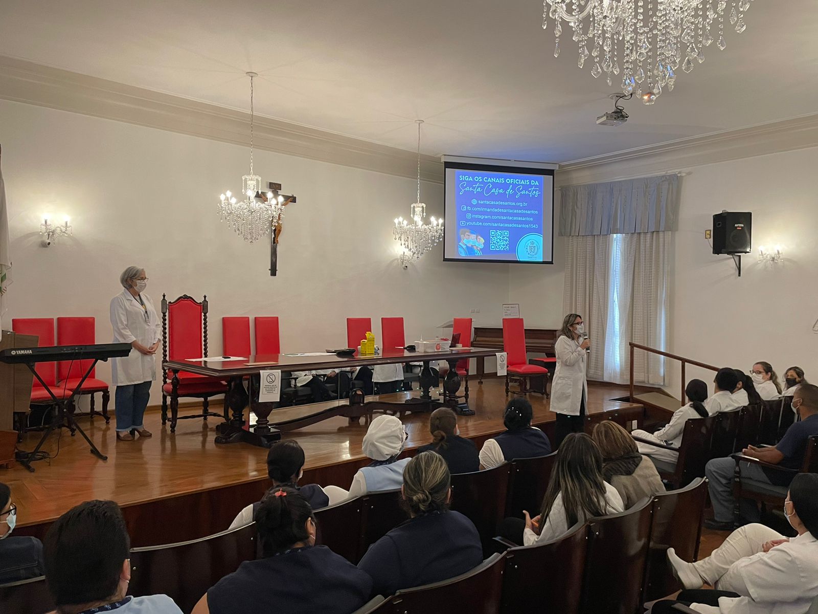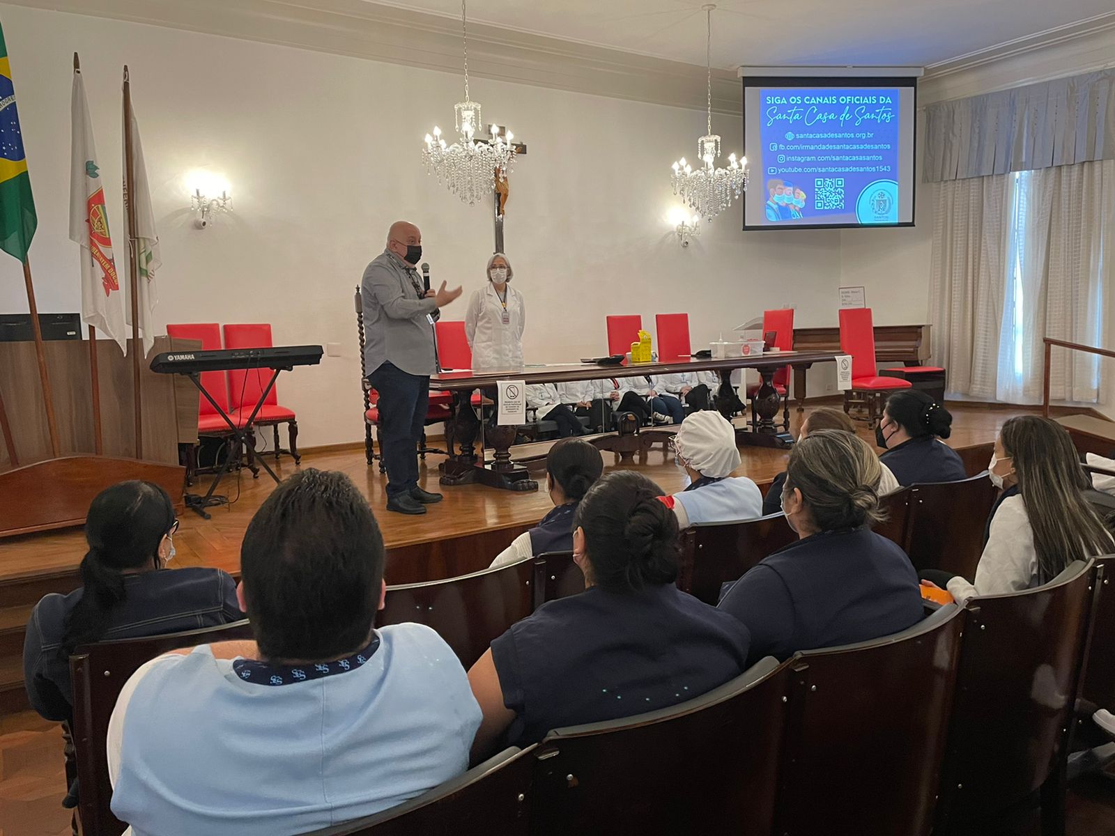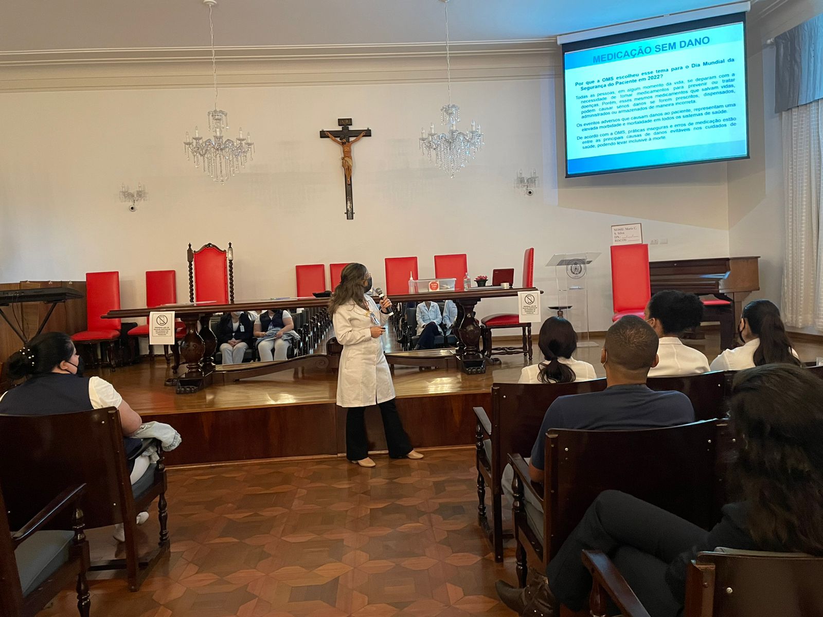 O Núcleo de Segurança do Paciente da Santa Casa de Santos promoveu nesta quinta, 29/9, a palestra “Medicação sem danos”, em alusão ao Dia Mundial de Segurança do Paciente, celebrado em 17/9. O tema foi escolhido de acordo com a campanha da Organização Mundial da Saúde – OMS, em reconhecimento à complexidade da prevenção e redução de danos relacionados ao uso de medicamentos.