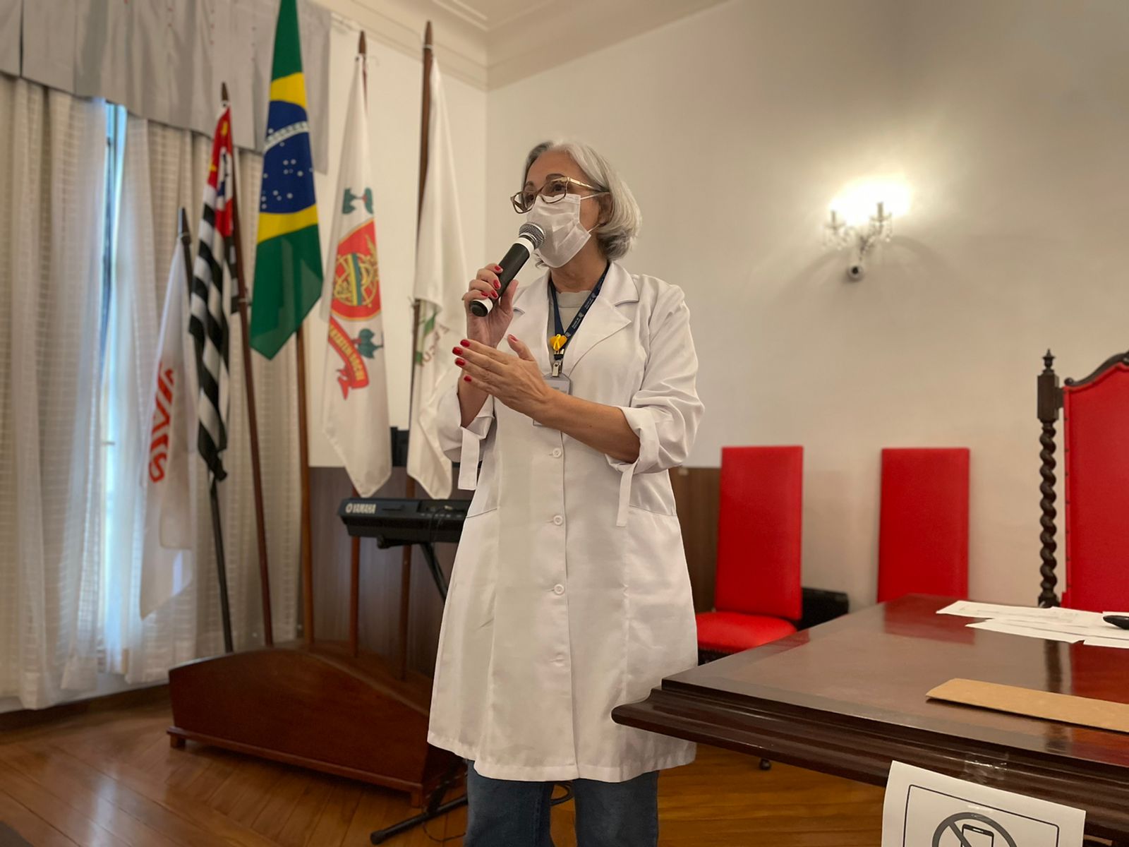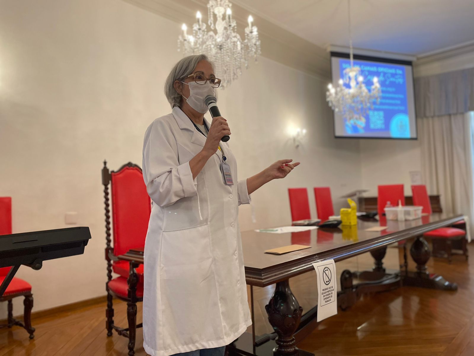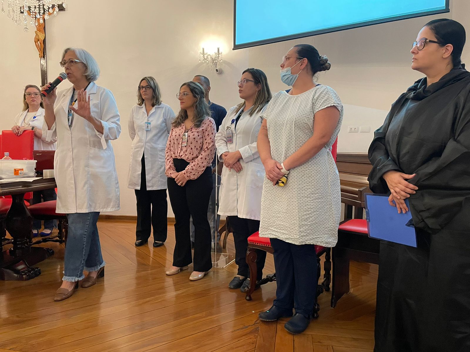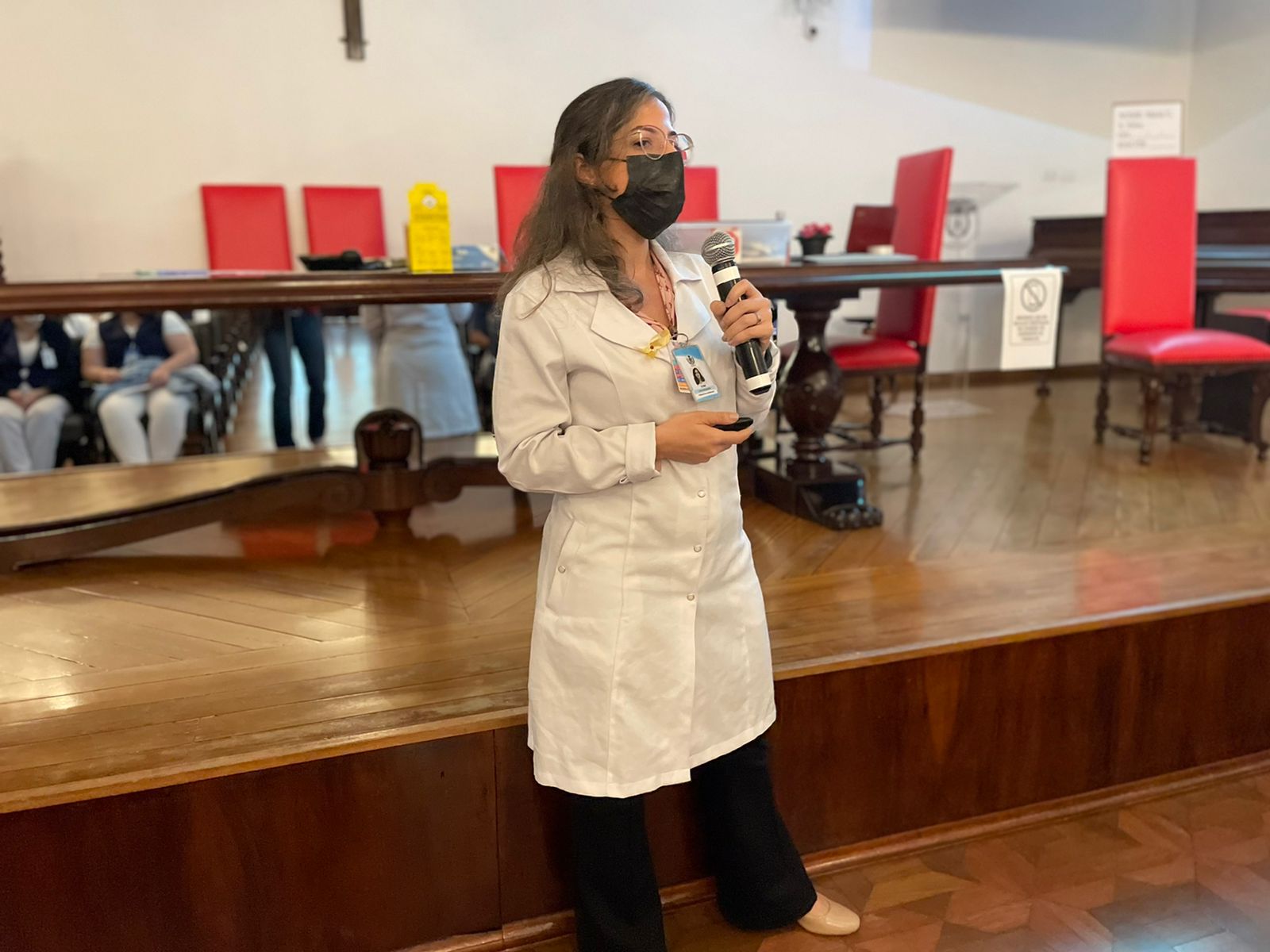 A coordenadora de Suprimentos e farmacêutica, Janaína Steluti, apresentou a equipe da Farmácia da Santa Casa, e deu sequência ao evento com a coordenadora da Farmácia Industrial Laís Giacomett, que explanou de forma mais detalhada sobre o preparo de medicamentos.