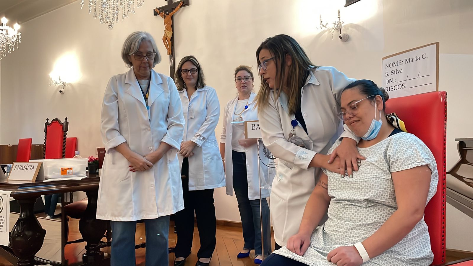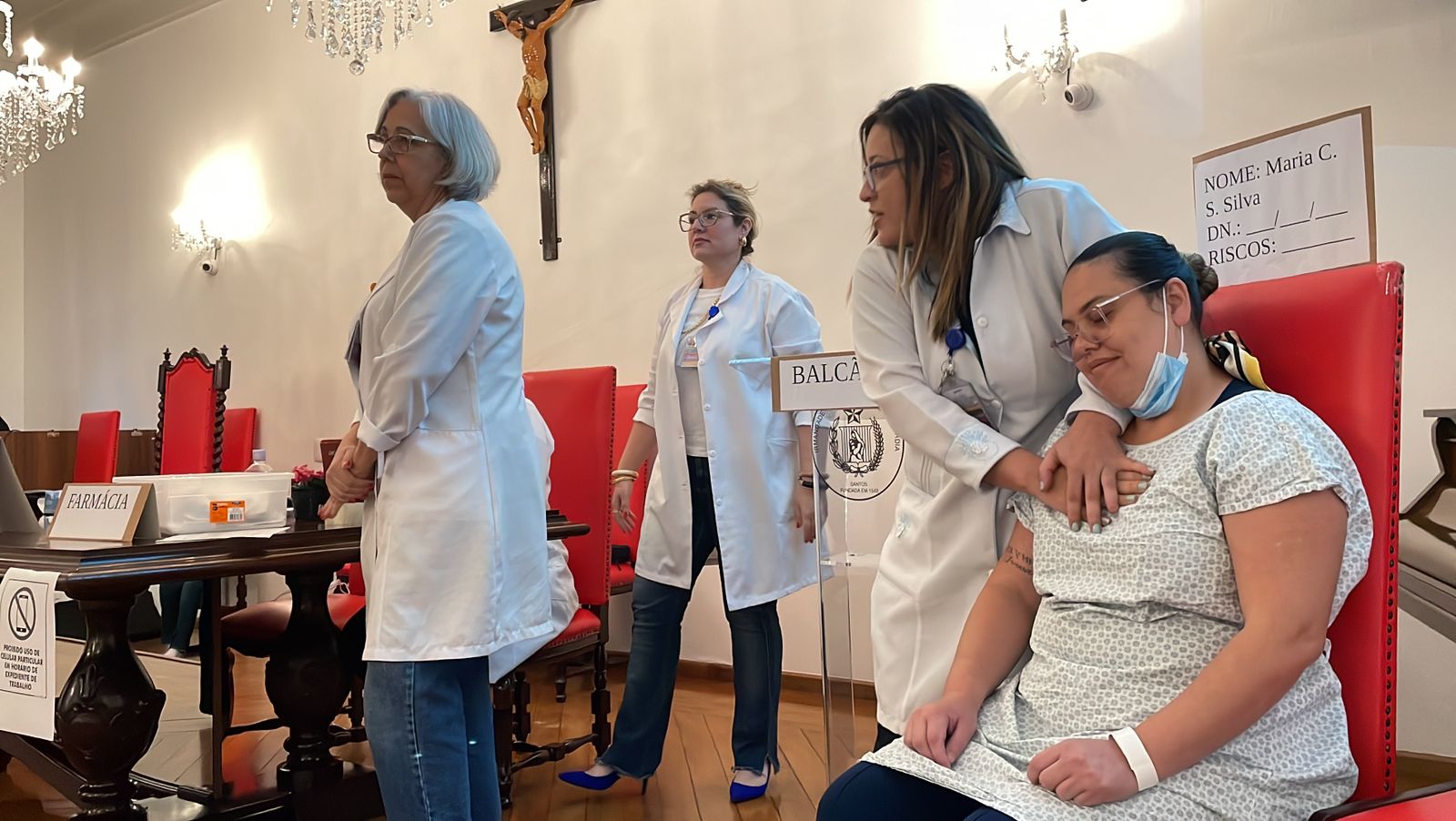 O ápice do evento ficou por conta de um teatro organizado especialmente para chamar a atenção sobre os riscos das condutas inadequadas em todo o processo da medicação, desde a prescrição médica até a administração do medicamento.