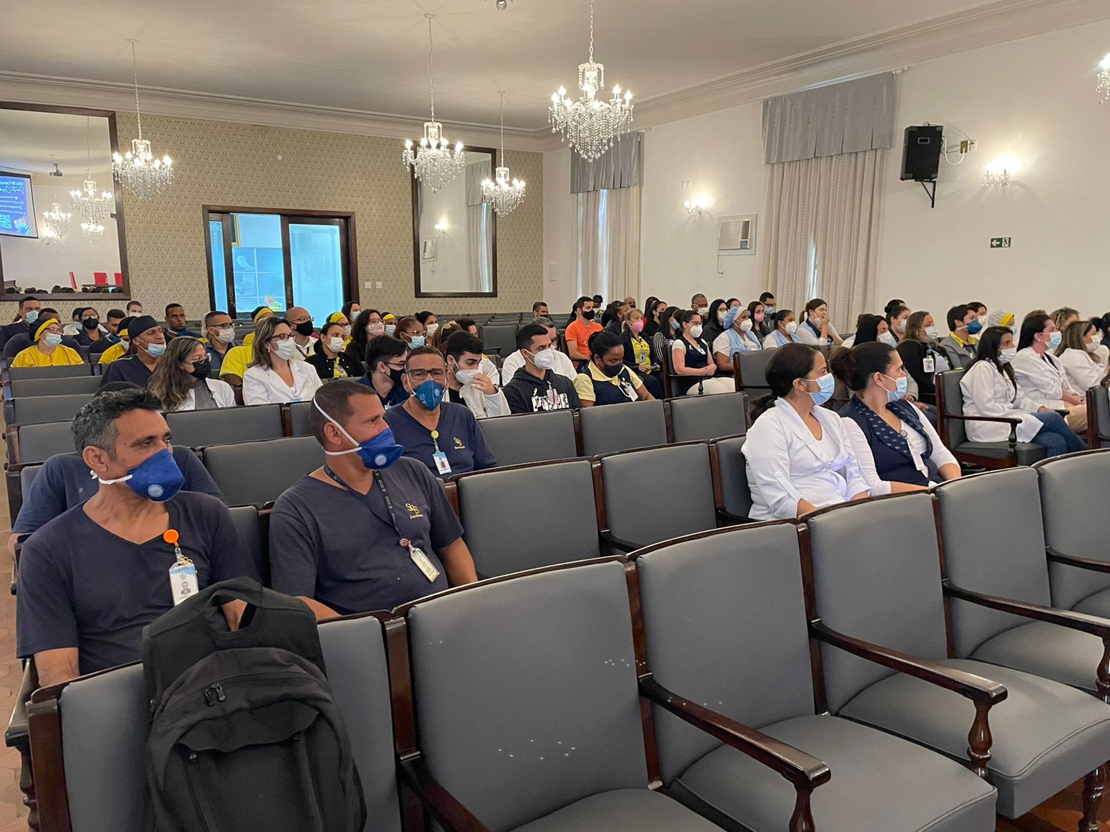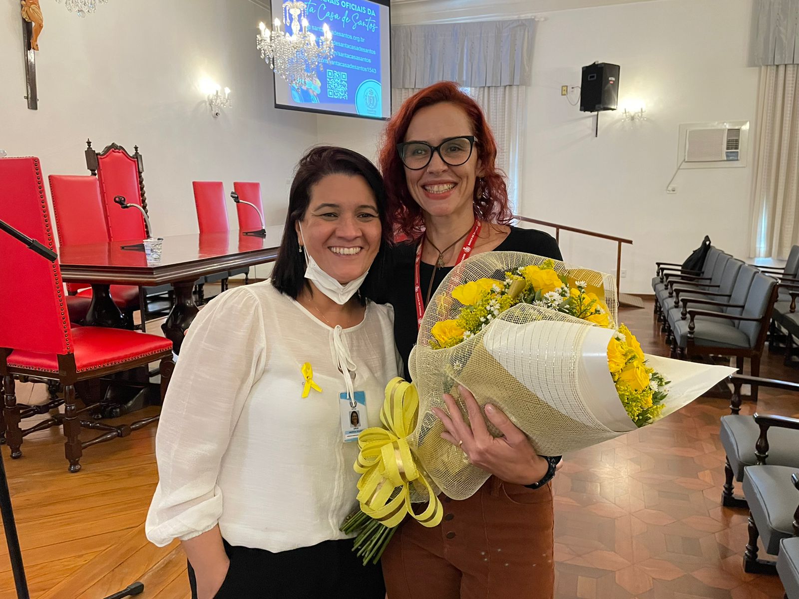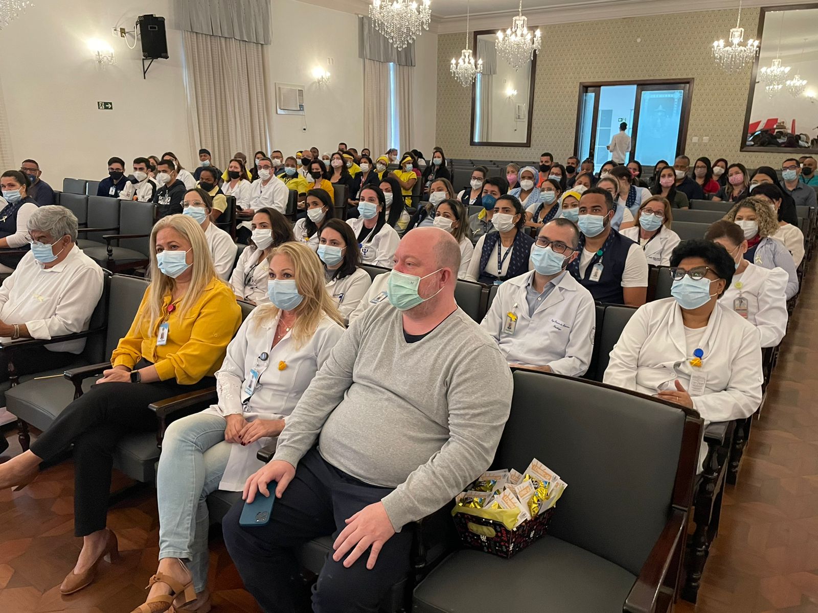 A programação do primeiro dia da Semana Amarela contou com palestras do Dr. Bruno Reis, Chefe do Serviço de Psiquiatria da Santa Casa; da Psicóloga Rita Russo, Coordenadora do Serviço de Psicologia; e apresentação do Enfº. Júlio Sabino, do Setor de Medicina do Trabalho, que falou sobre o grupo de apoio criado pelo serviço, especialmente para o cuidado da saúde mental do colaborador.
