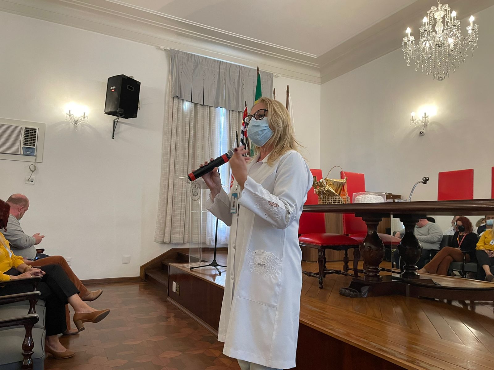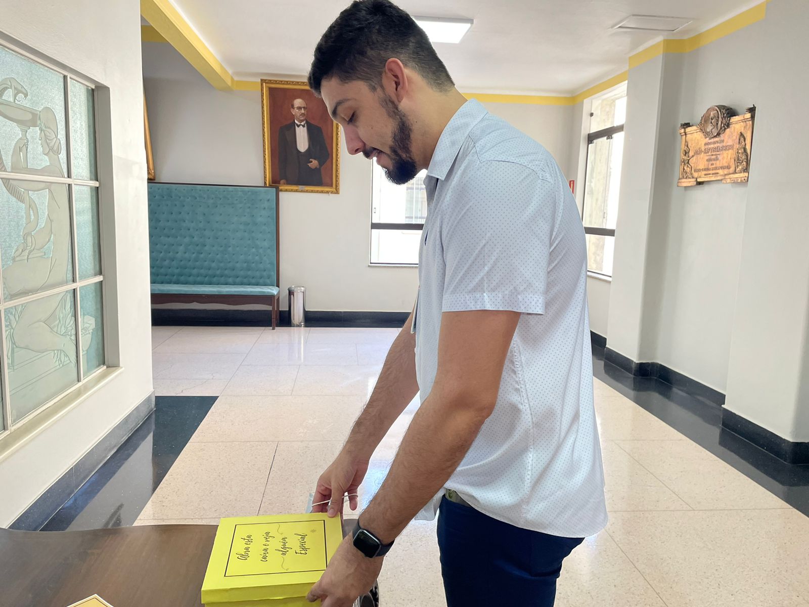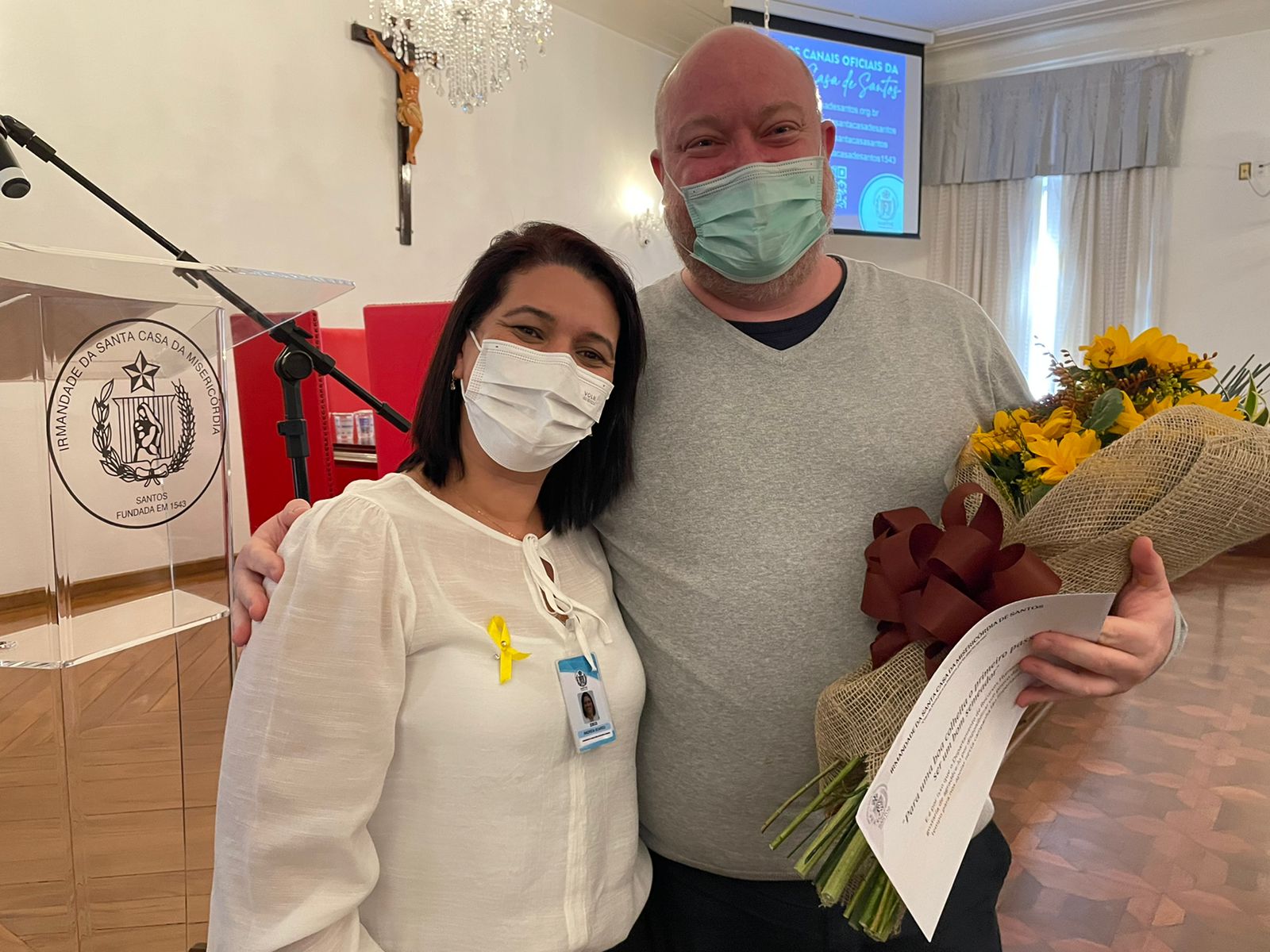 A programação do primeiro dia da Semana Amarela contou com palestras do Dr. Bruno Reis, Chefe do Serviço de Psiquiatria da Santa Casa; da Psicóloga Rita Russo, Coordenadora do Serviço de Psicologia; e apresentação do Enfº. Júlio Sabino, do Setor de Medicina do Trabalho, que falou sobre o grupo de apoio criado pelo serviço, especialmente para o cuidado da saúde mental do colaborador.