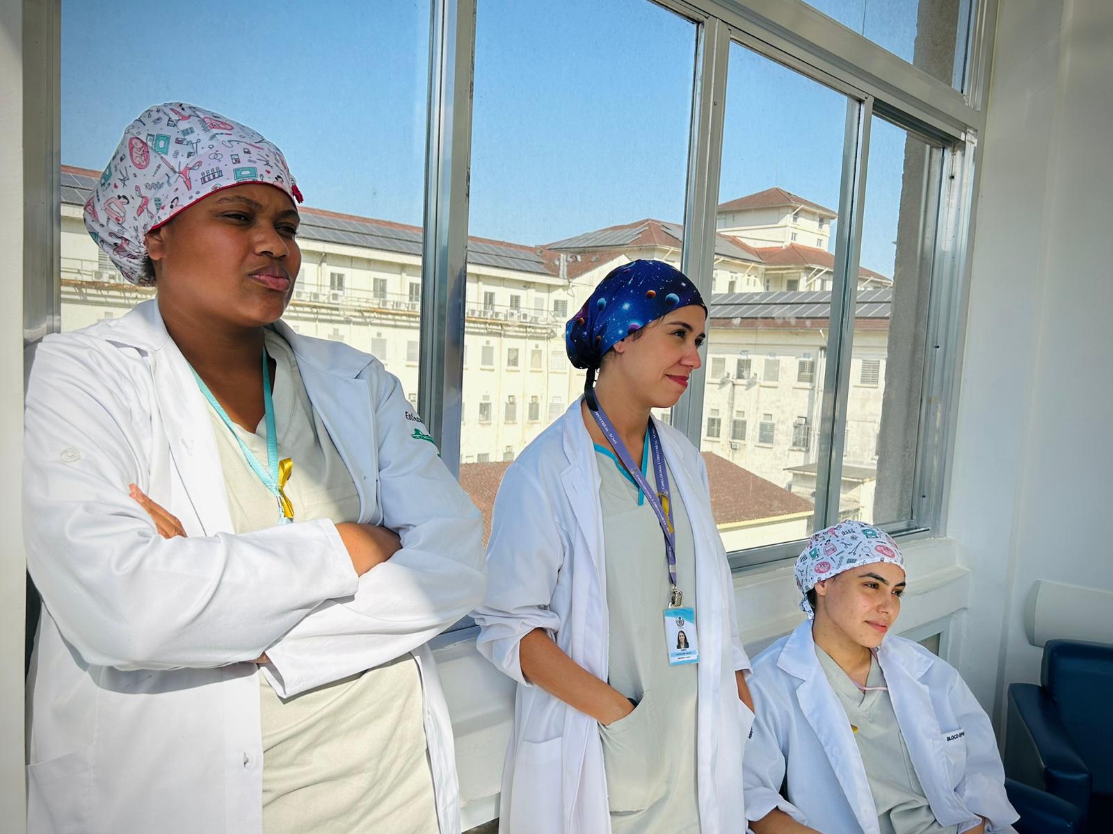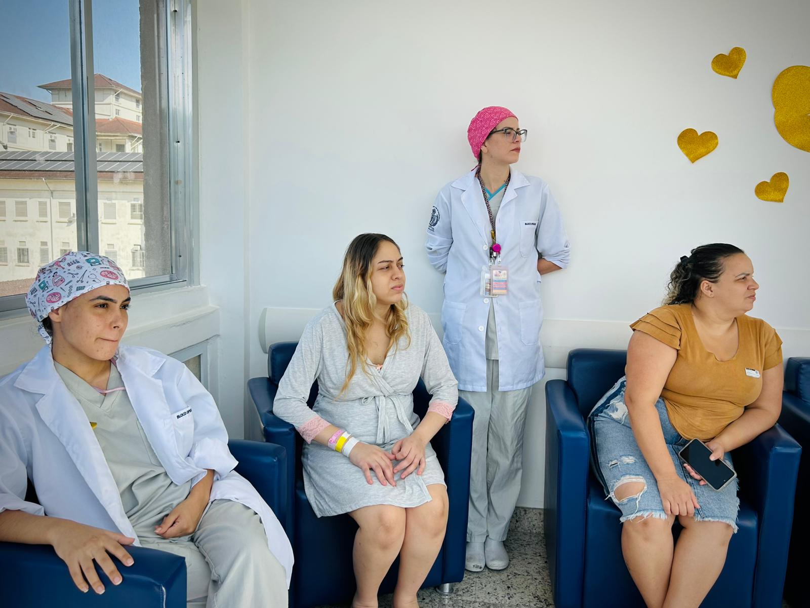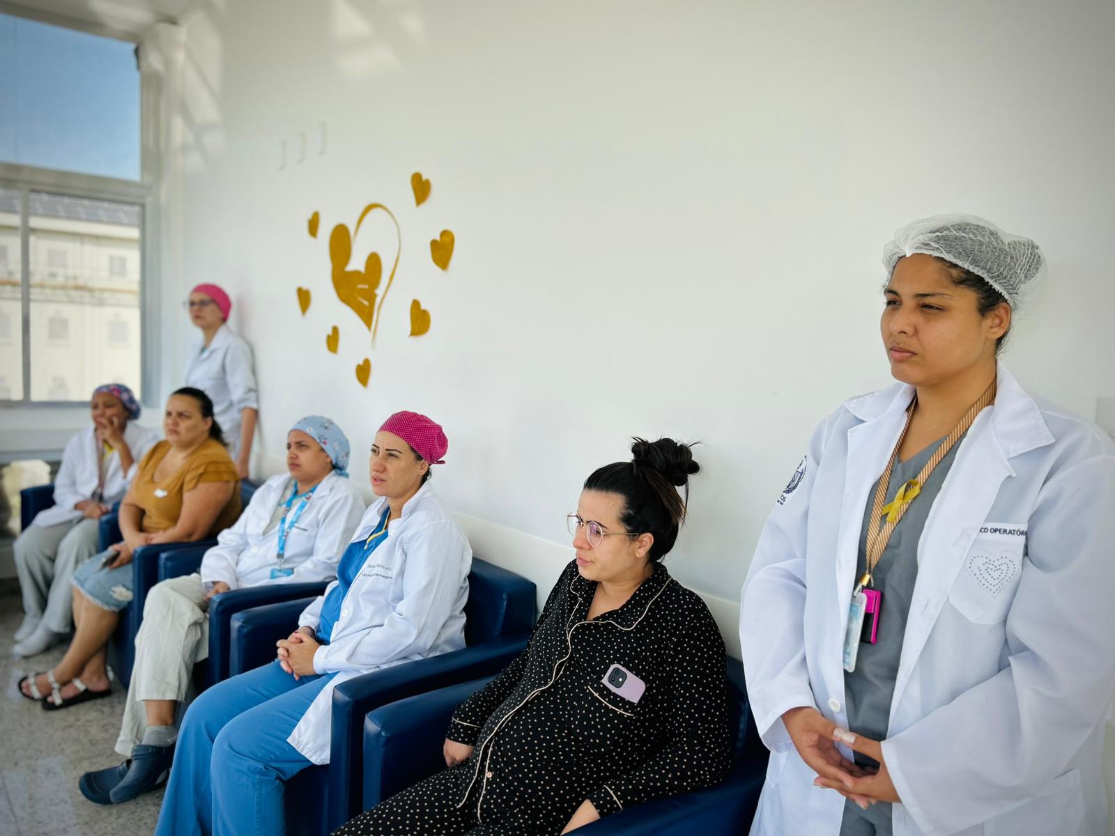 Com a Maternidade toda enfeitada da cor dourada, os colaboradores fizeram diversas atividades com as recém mamães e também com as gestantes que estavam internadas. No primeiro dia, a enfermeira Edlaine Ramos, reuniu as pacientes no solarium da ala e falou sobre Aleitamento e mostrou na prática as técnicas de amamentação.