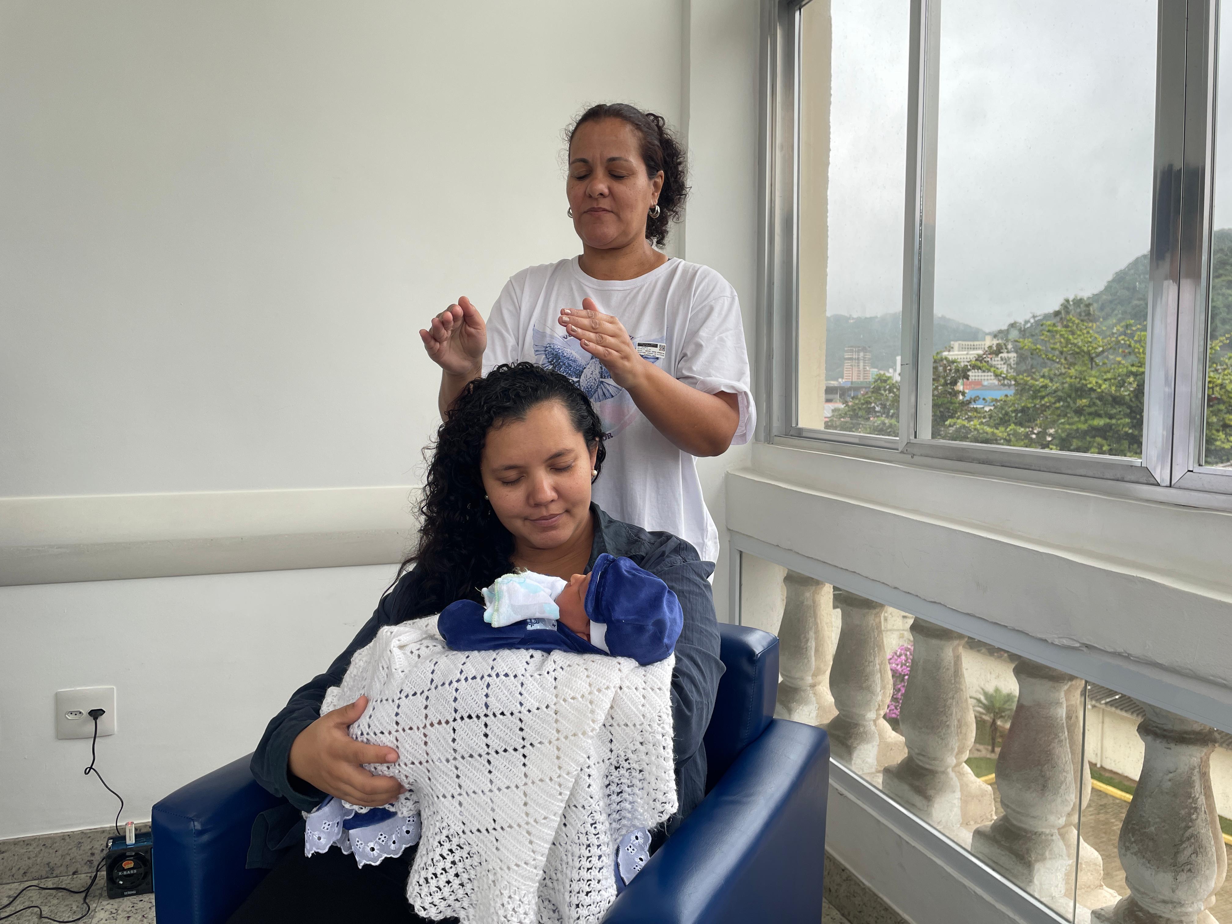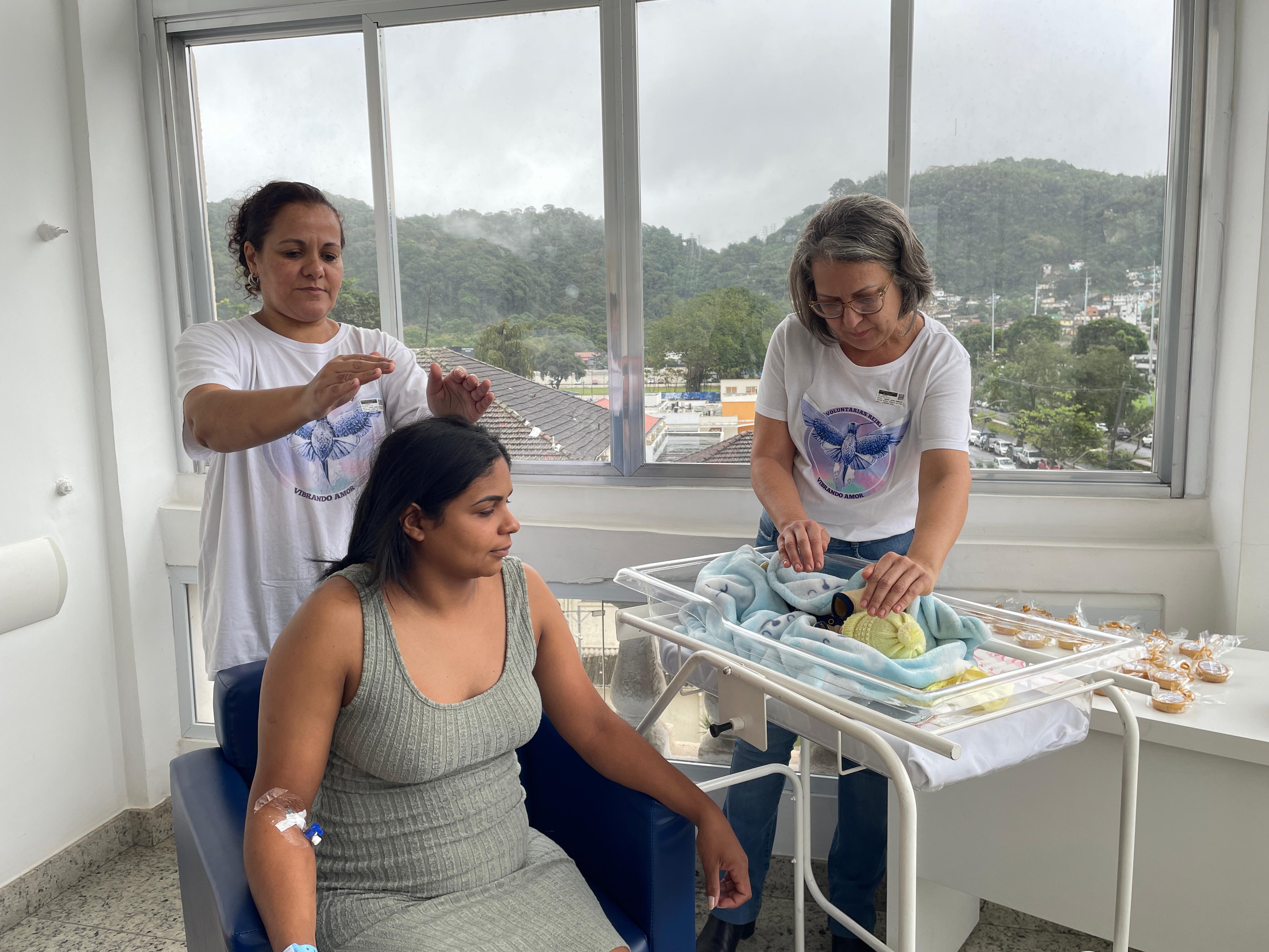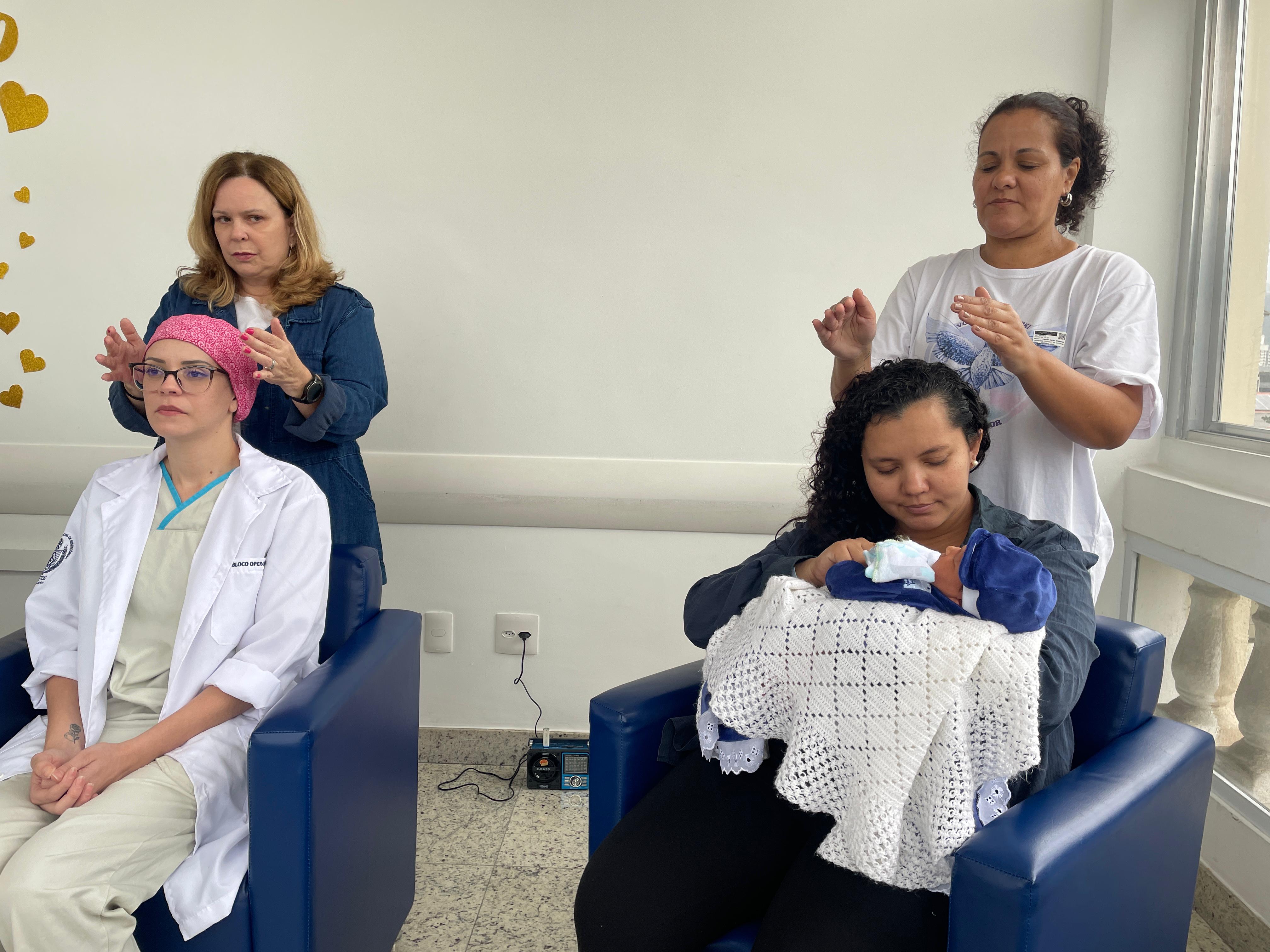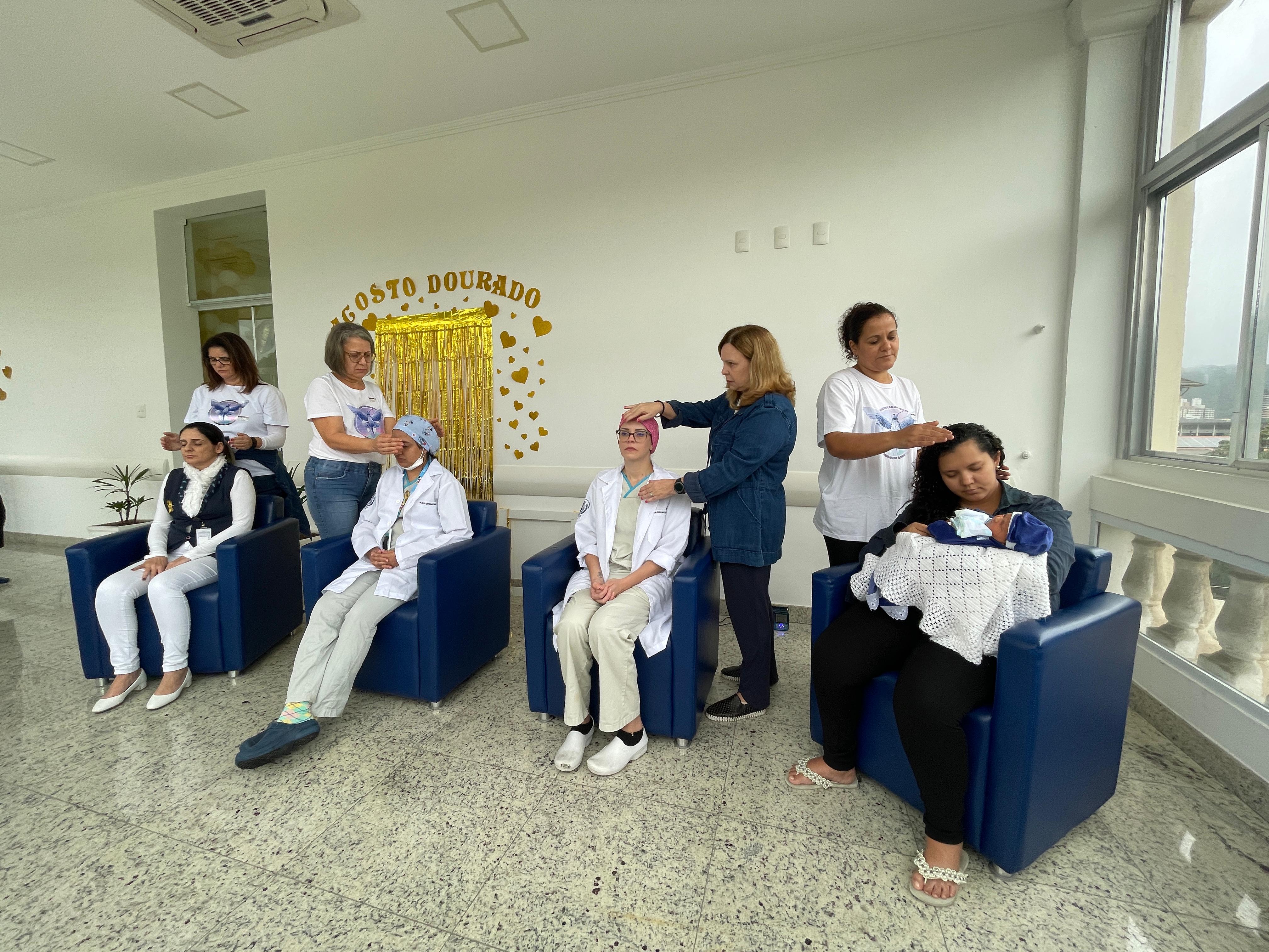 No último dia, as mamães puderam fazer sessões de Reiki, com o Grupo Vibrando Amor. O Reiki é uma terapia integrativa complementar que usa a imposição das mãos para transferir “energia vital universal” para fins curativos. Esta prática é baseada em conhecimentos orientais tradicionais, e trabalha o ser humano de forma holística (atuando nos níveis emocional, mental e físico), restabelecendo o equilíbrio energético vital. É importante destacar que o Reiki não é uma prática religiosa, não é invasivo e não tem contraindicações ou efeitos adversos.