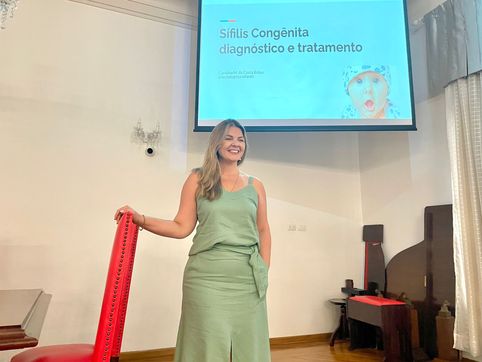 Para fechar a programação, a infectologista pediátrica, Drª Carolina Marquez da Costa Brites explicou como interpretar os exames laboratoriais na sífilis congênita e o tratamento no recém-nascido.