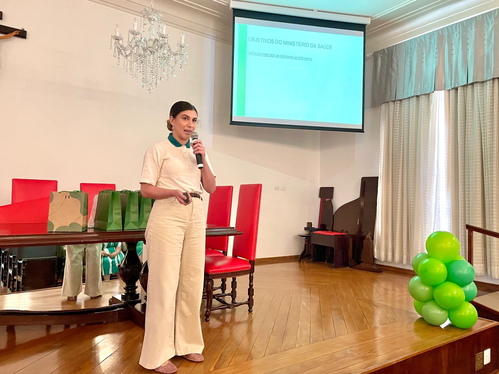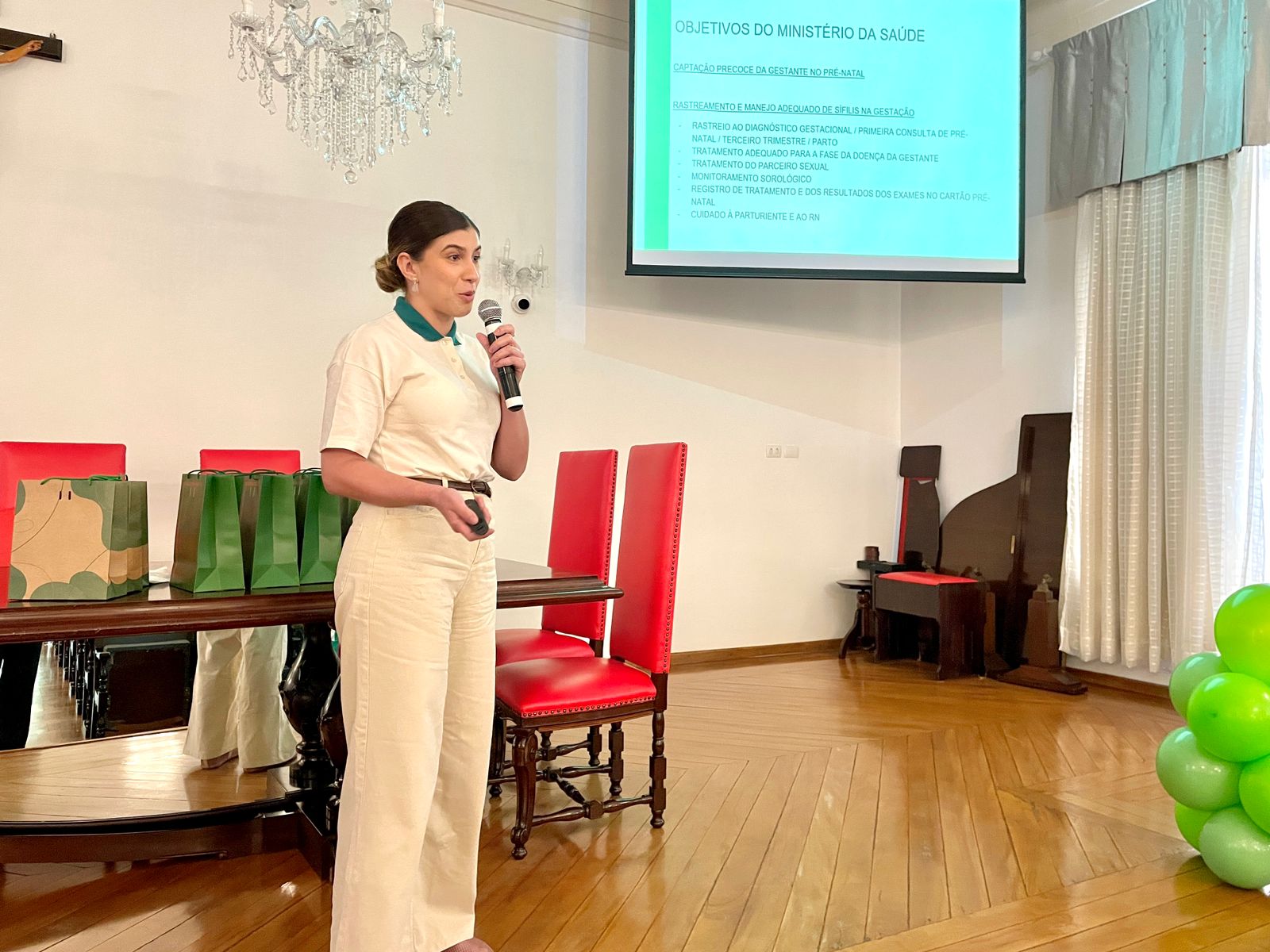 Em seguida, as médicas residentes do Serviço de Ginecologia e Obstetrícia, Drª. Geovana Cássia de Carvalho Parras e Maria Luiza Assumpção, abordaram sobre a sífilis na gestação e como são realizados o rastreamento e tratamento durante esse período.