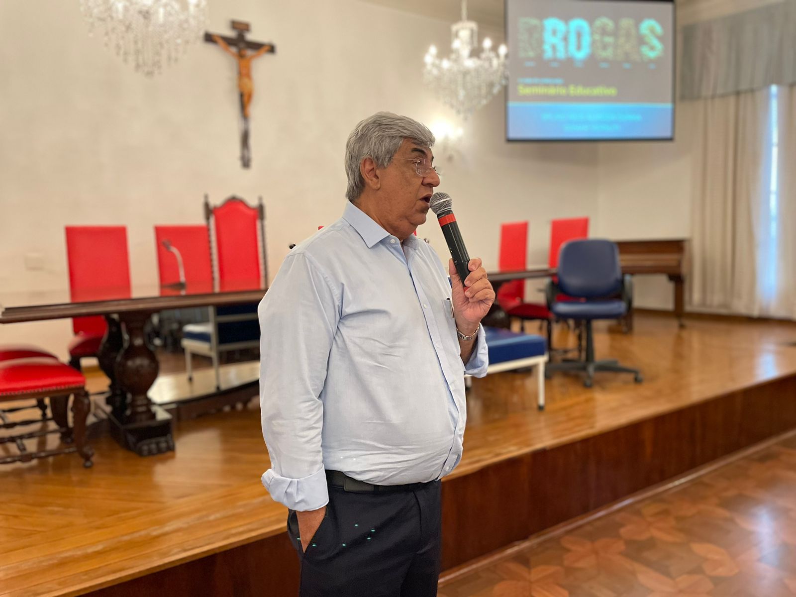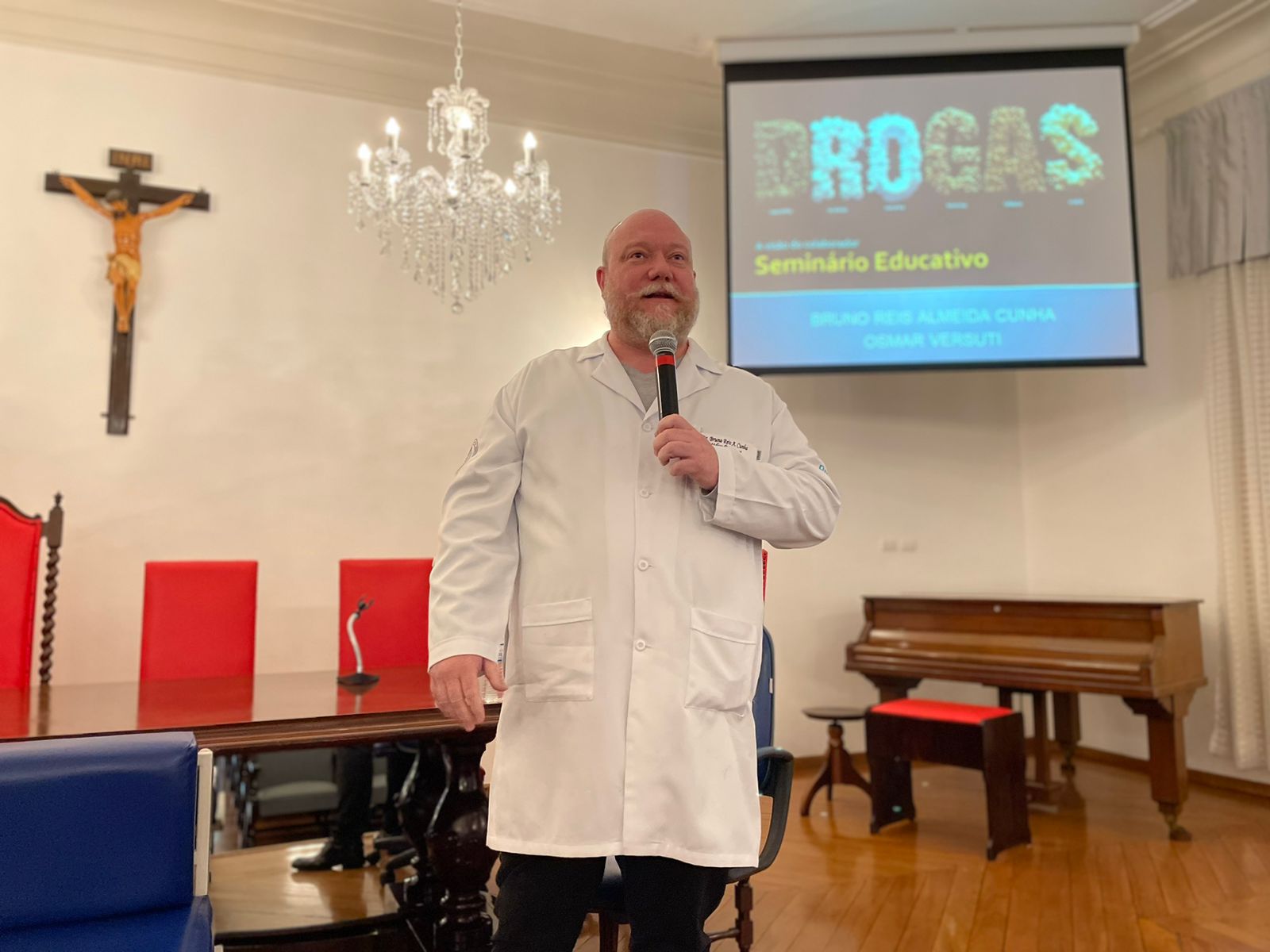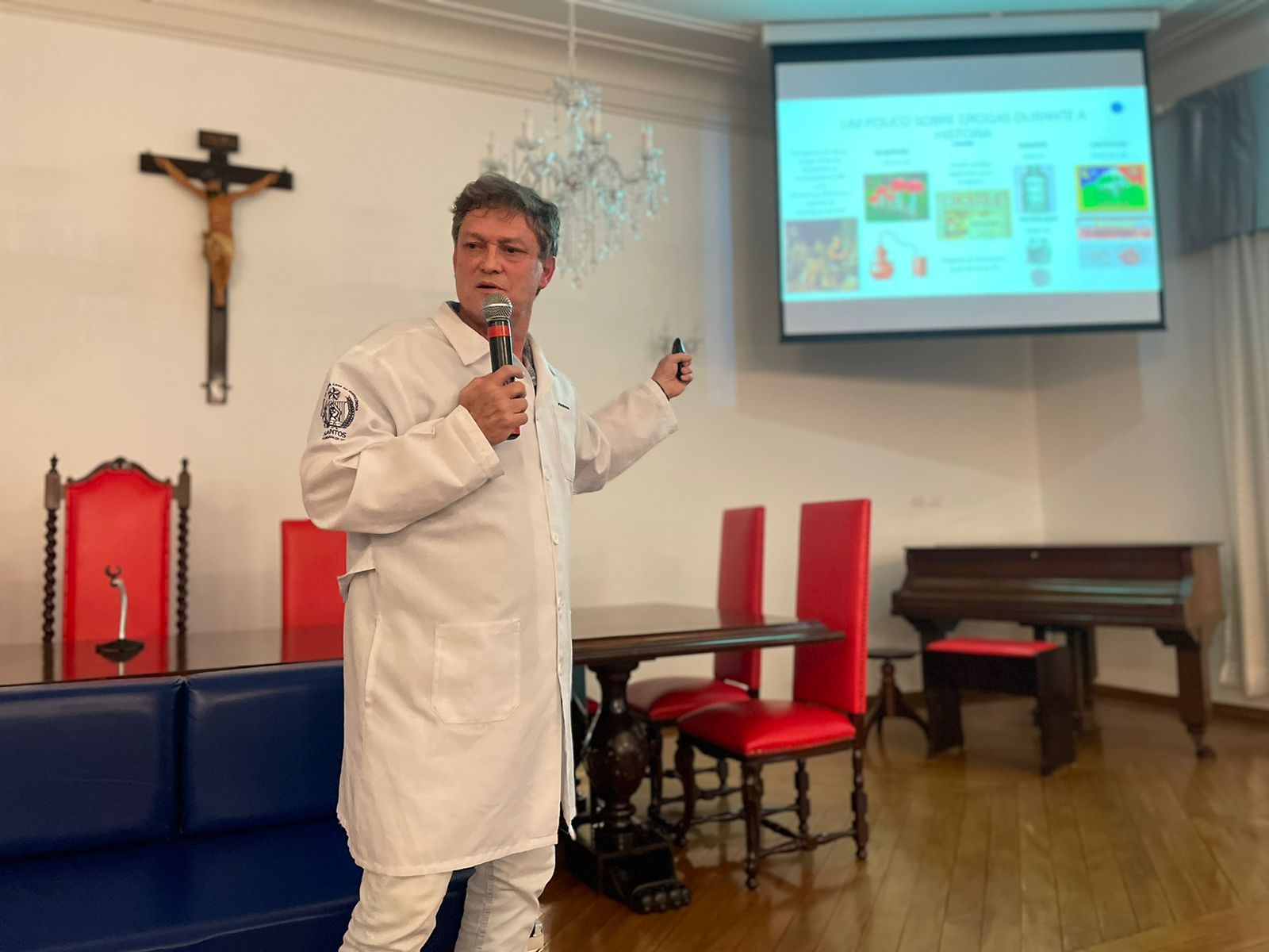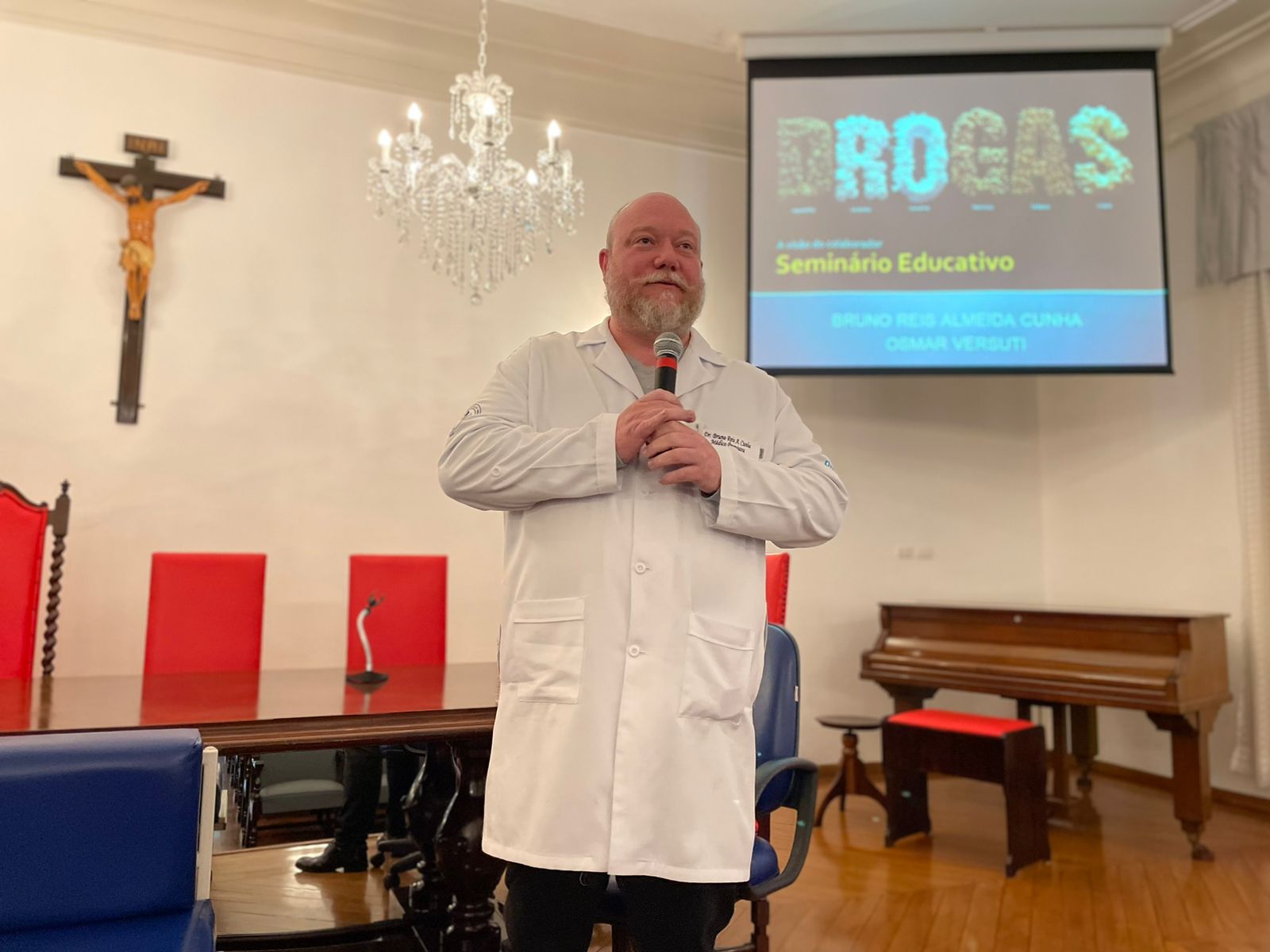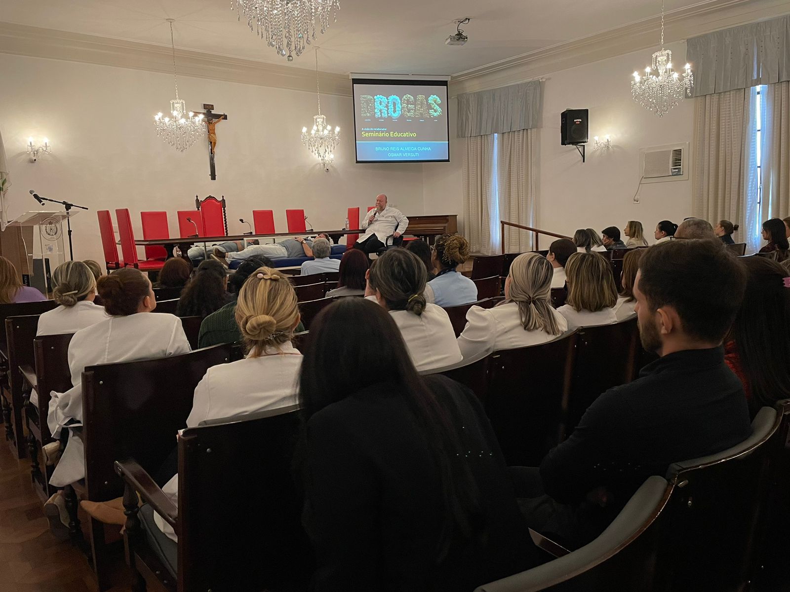 O psicólogo da Santa Casa, Dr. Osmar Versuti, especialista no tema, de maneira abrangente exemplificou muitas situações e casos, alertando quanto aos riscos das drogas, mascaradas como opções de lazer ou relaxamento, e que aprisionam as pessoas de modo silencioso inicialmente.