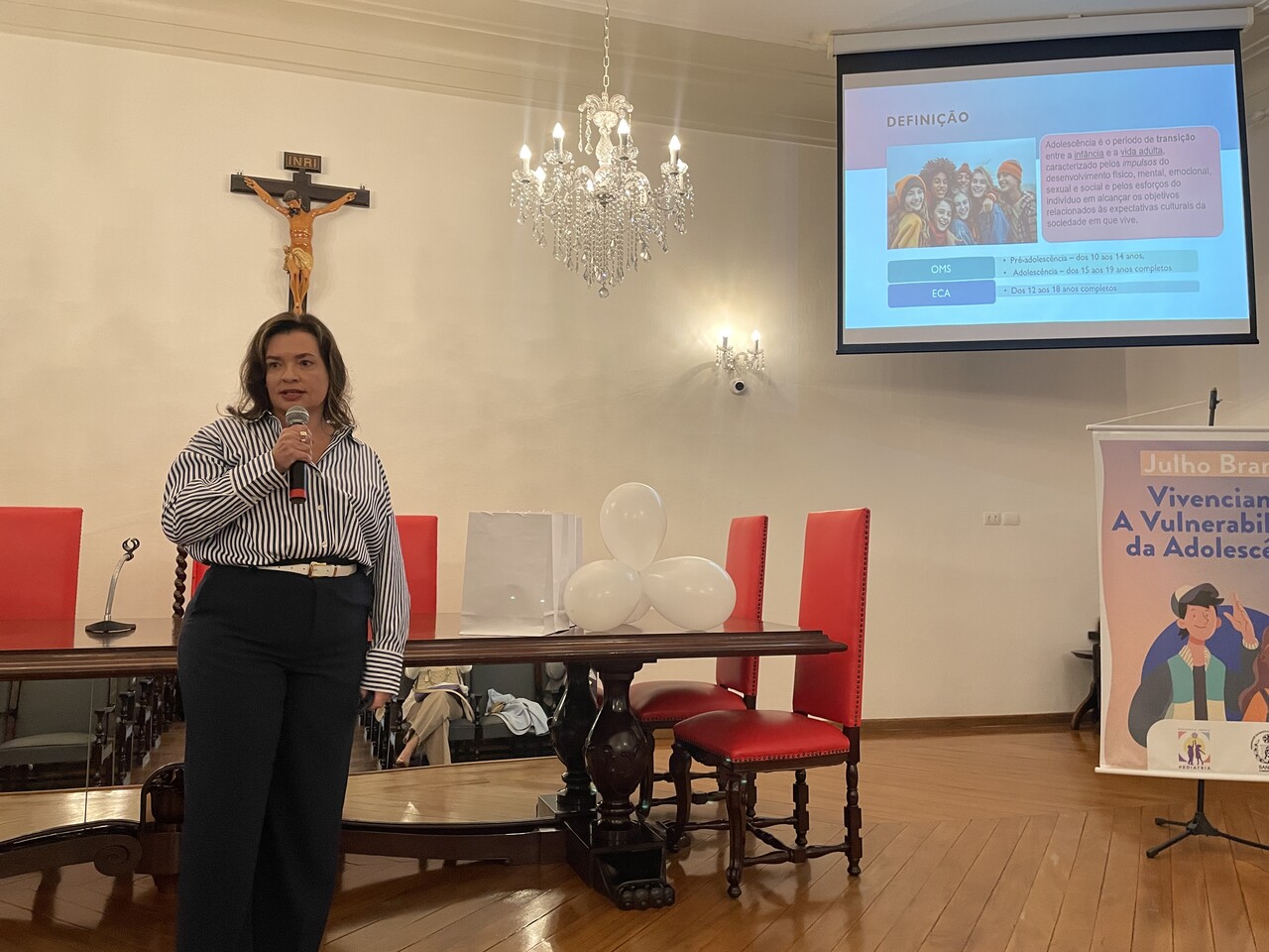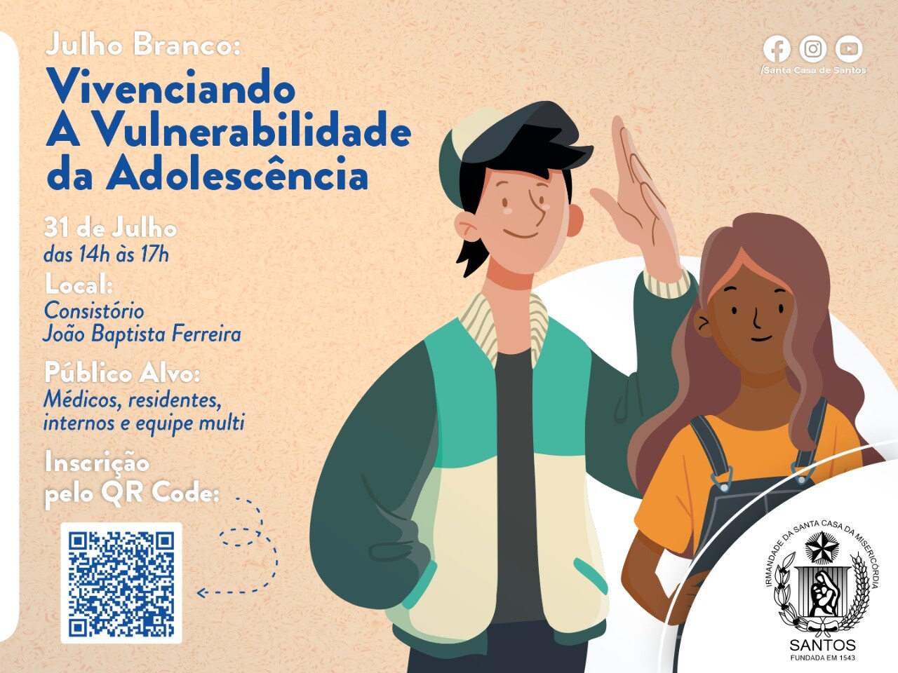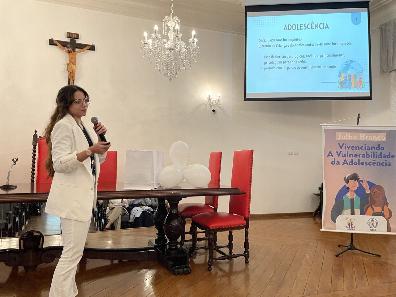 Na tarde do dia 31 de julho de 2024, o Consistório da Santa Casa de Santos ficou lotado com profissionais de saúde para assistirem painéis sobre o Julho Branco - Mês que debate a Vulnerabilidade na Adolescência. O Serviço de Pediatria da Irmandade organizou o evento que contou com cerca de 127 inscritos.