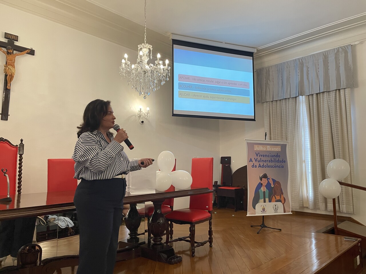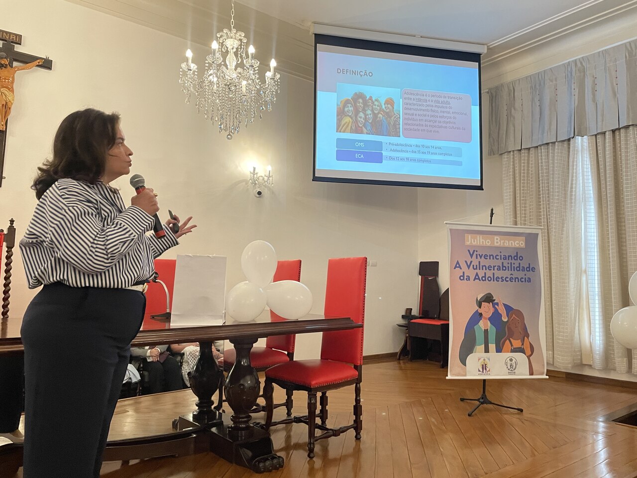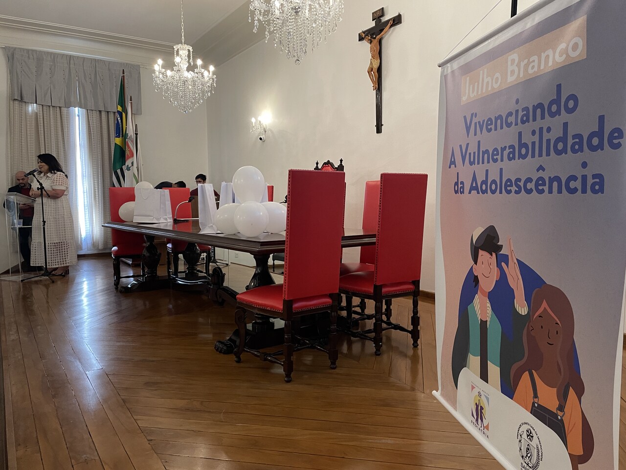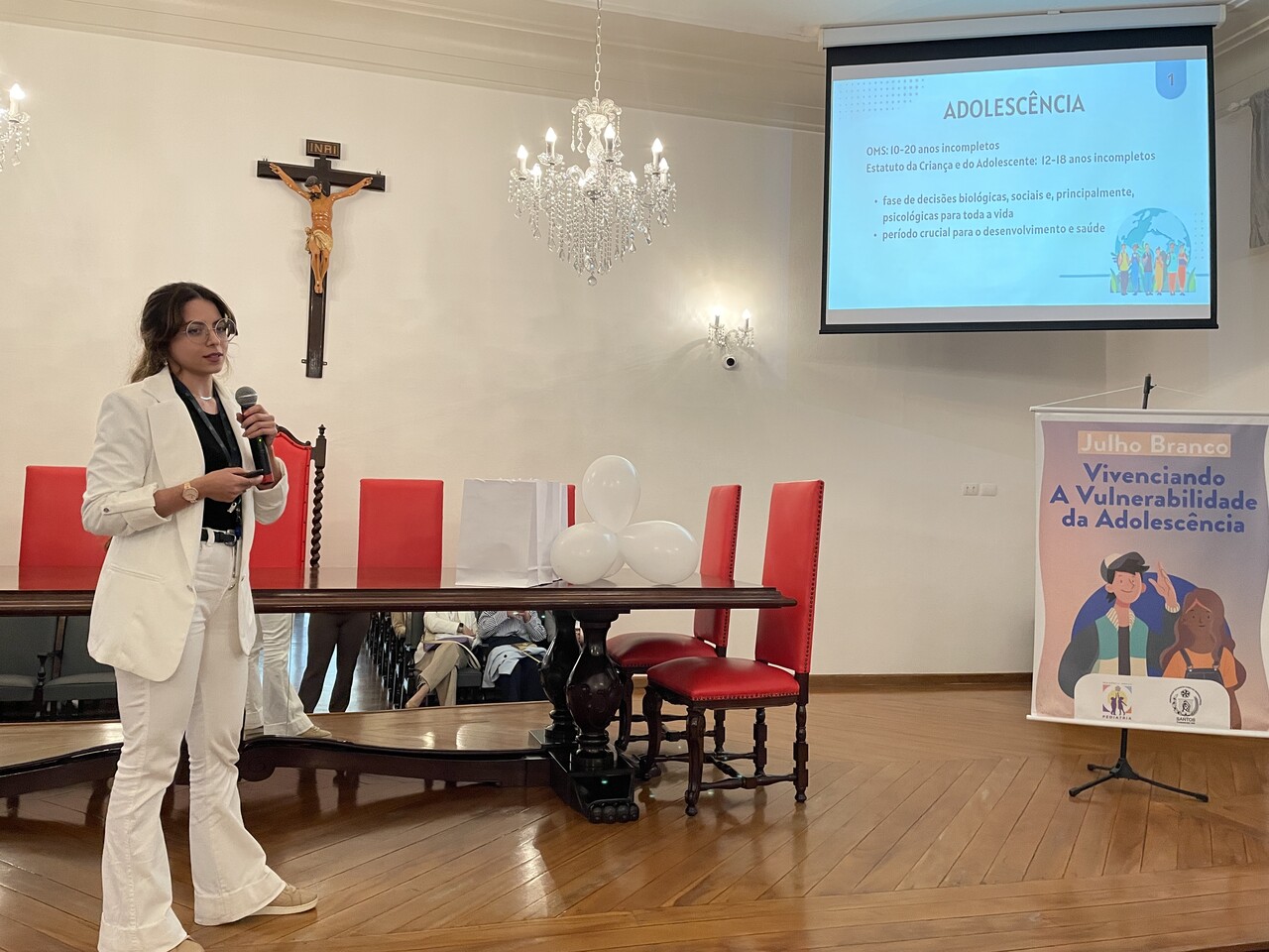 Na tarde do dia 31 de julho de 2024, o Consistório da Santa Casa de Santos ficou lotado com profissionais de saúde para assistirem painéis sobre o Julho Branco - Mês que debate a Vulnerabilidade na Adolescência. O Serviço de Pediatria da Irmandade organizou o evento que contou com cerca de 127 inscritos.