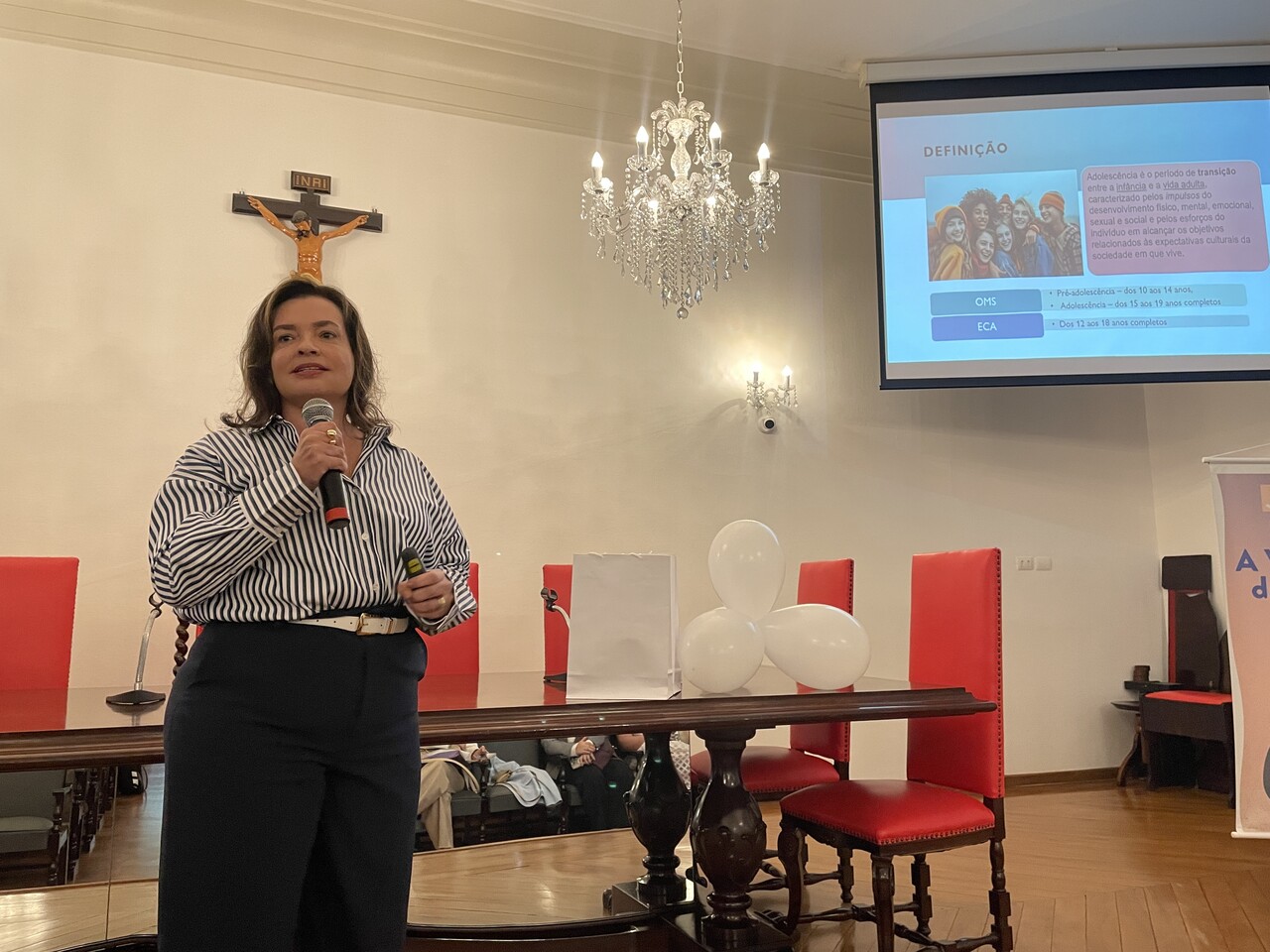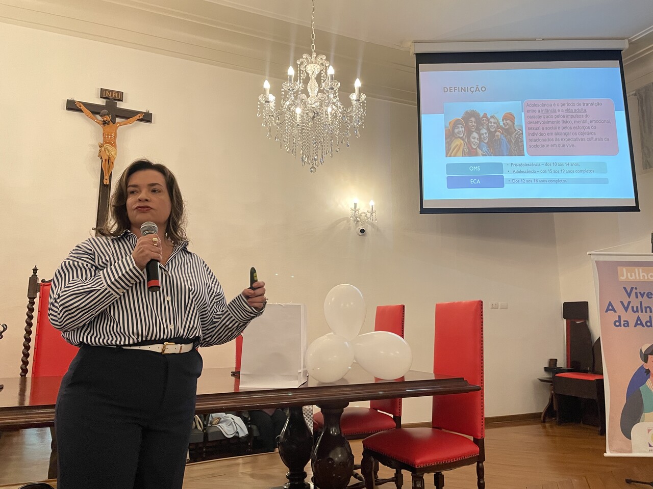 No terceiro e último painel da tarde, a psicóloga clínica Valéria Christina de Souza Santos falou sobre “Como apoiar, acolher e oferecer ajuda ao adolescente”. Valéria destacou a importância da compreensão do universo do adolescente, as oscilações de humor e a busca incessante por novos acontecimentos. “As gerações são diferentes, e hoje os adolescentes nasceram no mundo digital, conectados, e isso fez com que tenhamos o maior número de pessoas ansiosas. A maior causa de mortes com adolescentes é em decorrência do suicídio. Por isso a importância de observar as pequenas mudanças de comportamento”.