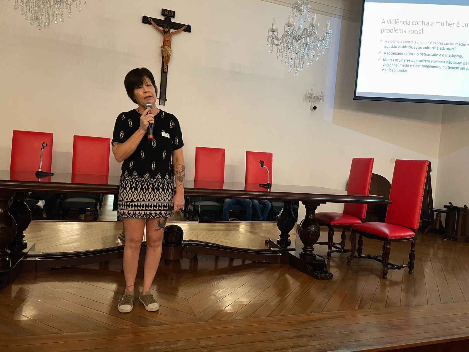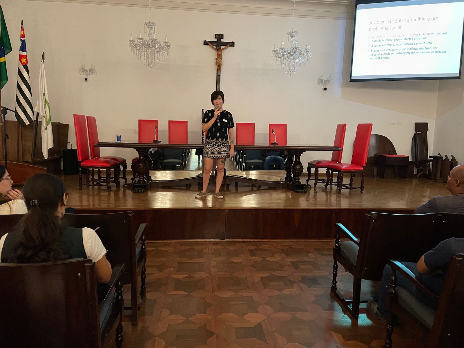 No 3º dia de SIPAT, na parte da manhã, o tema “Violência Contra Mulheres” foi abordado pela professora da Universidade São Judas, Drª. Ana Maria Melo e Souza, que detalhou sobre todas as formas de violência, seus impactos, além de informar sobre como e onde buscar ajuda.