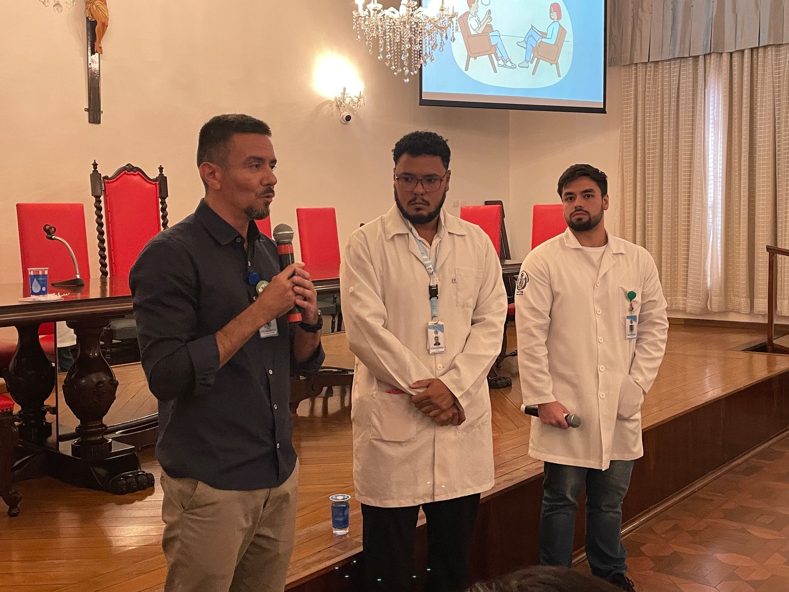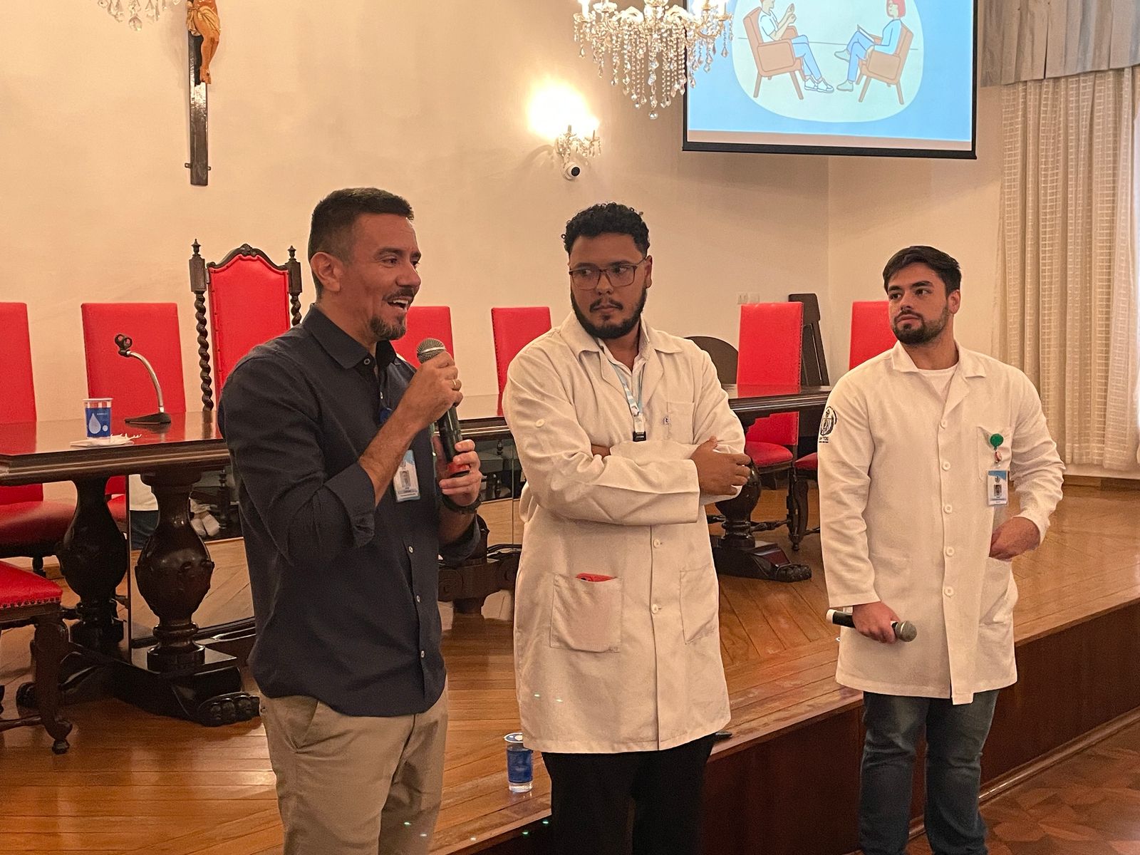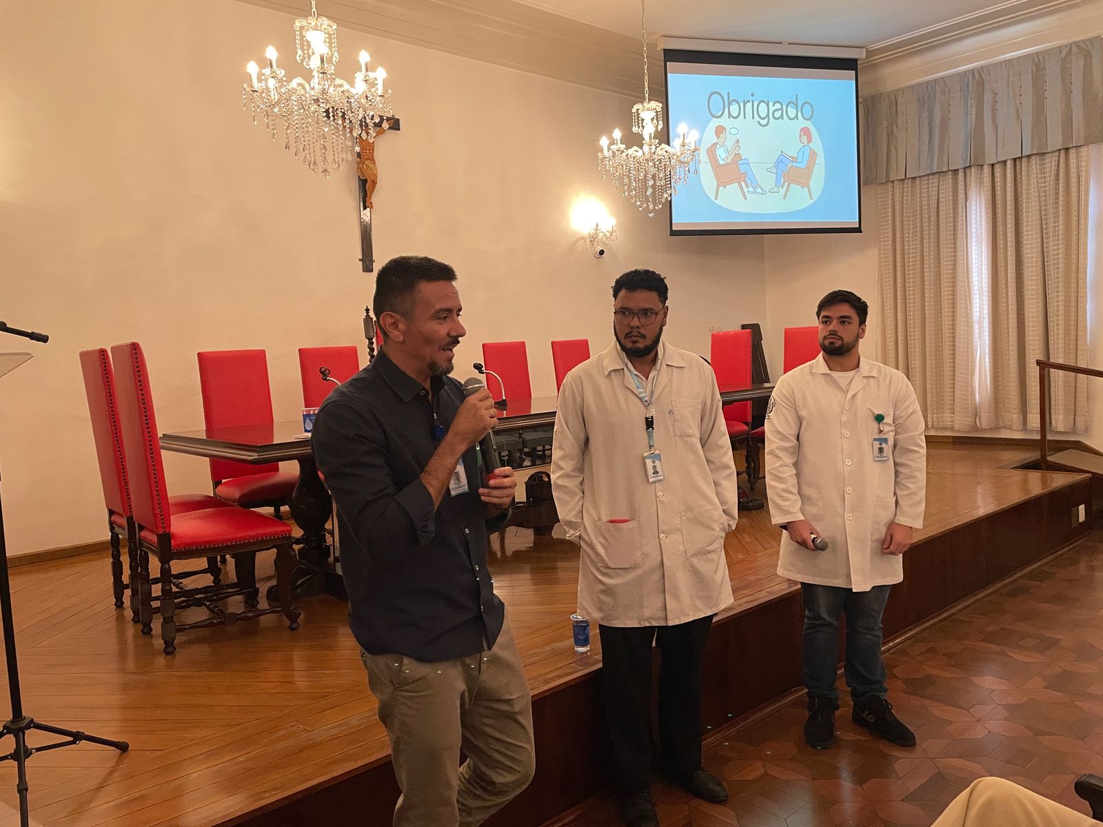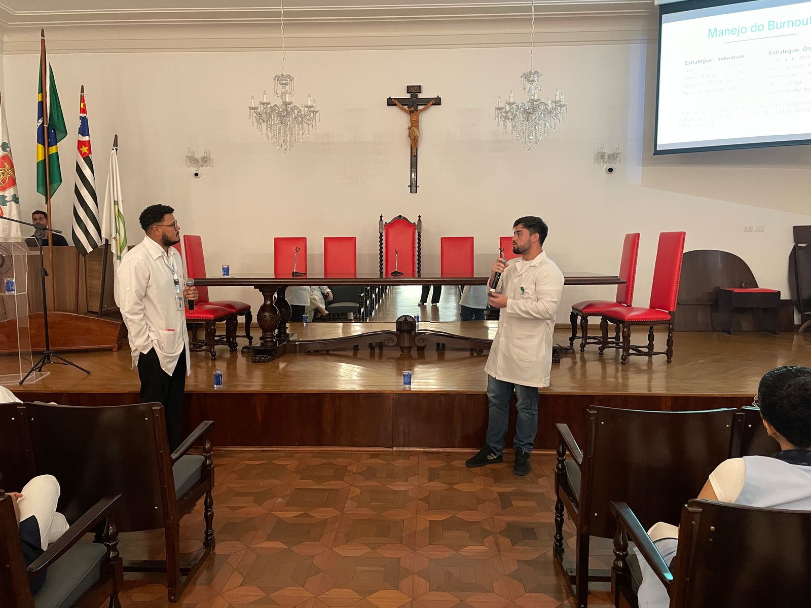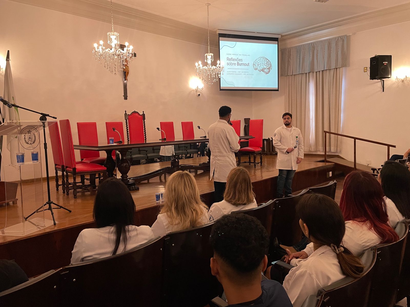 Na palestra da tarde do dia 25/3, os Psicólogos Ocupacionais da Santa Casa, Júlio Maurício e Leonardo Fagundes, falaram sobre o Burnout e a exaustão profissional.