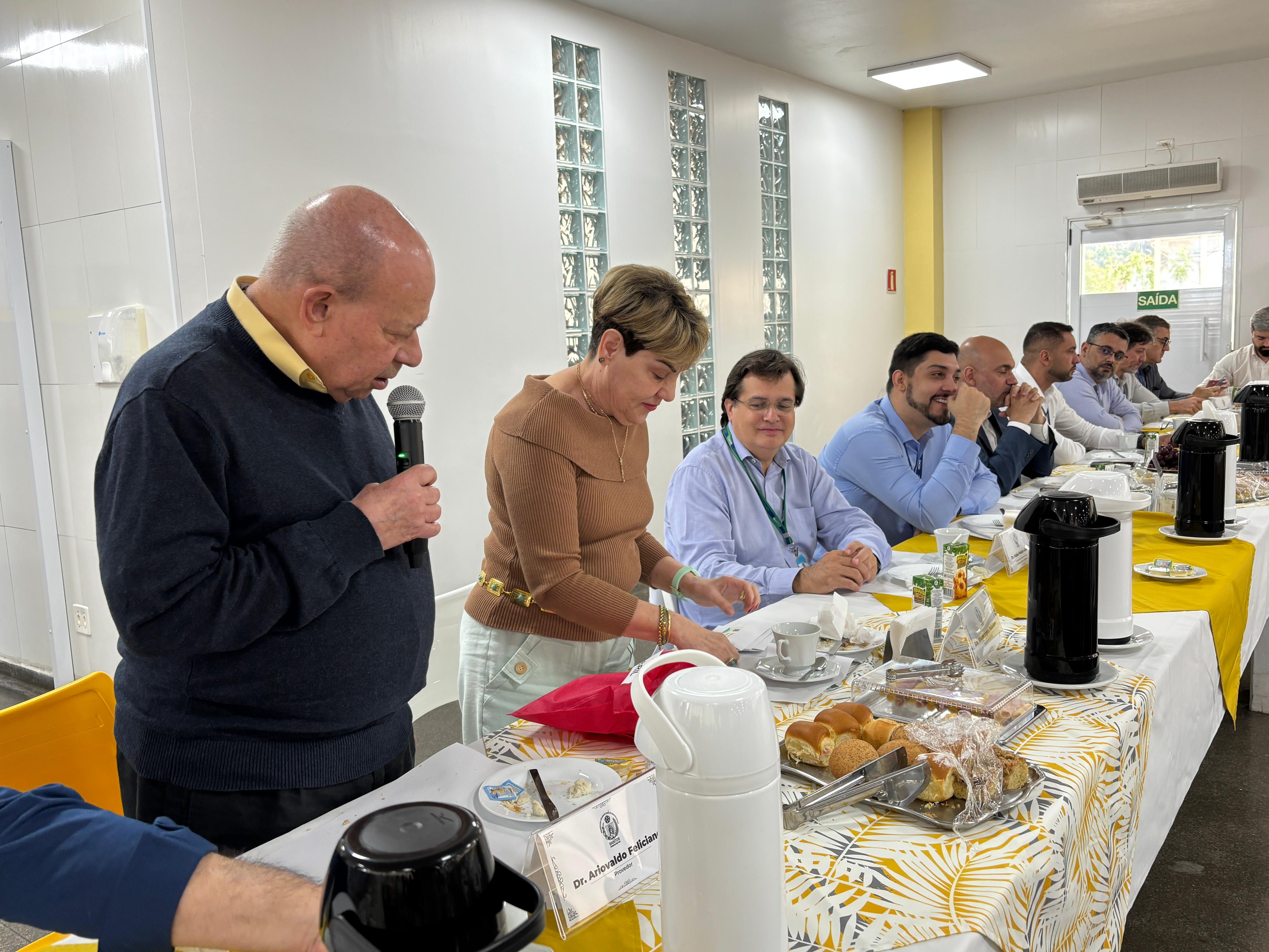 O provedor Ariovaldo Feliciano deu início ao evento agradecendo a presença dos colaboradores e falou sobre o andamento da obra do novo Serviço de Oncologia e Quimioterapia, que será inaugurado mês que vem. Além disso, também destacou a obra da UTI Neurológica, que em breve também será inaugurada. São projetos que impactam o atendimento do SUS e a cidade de Santos.