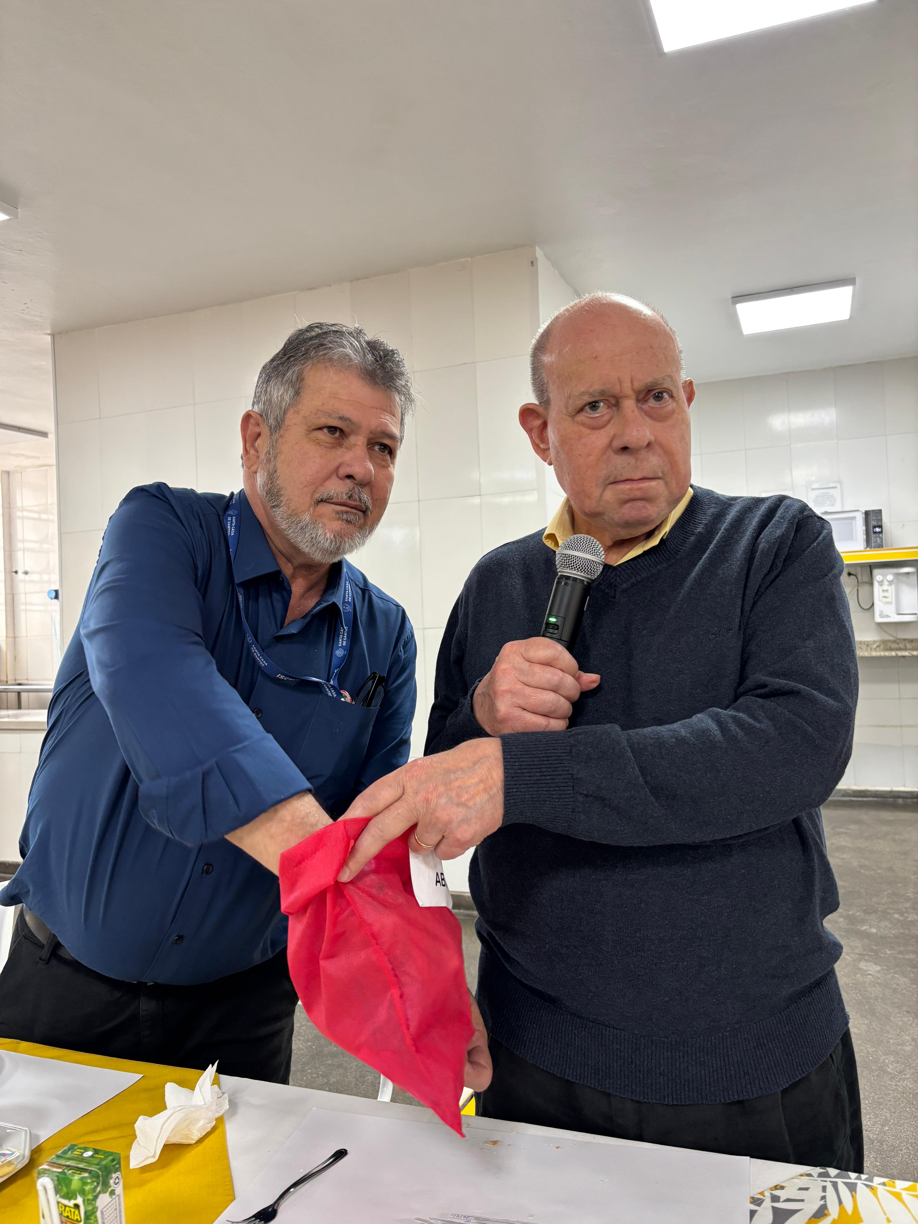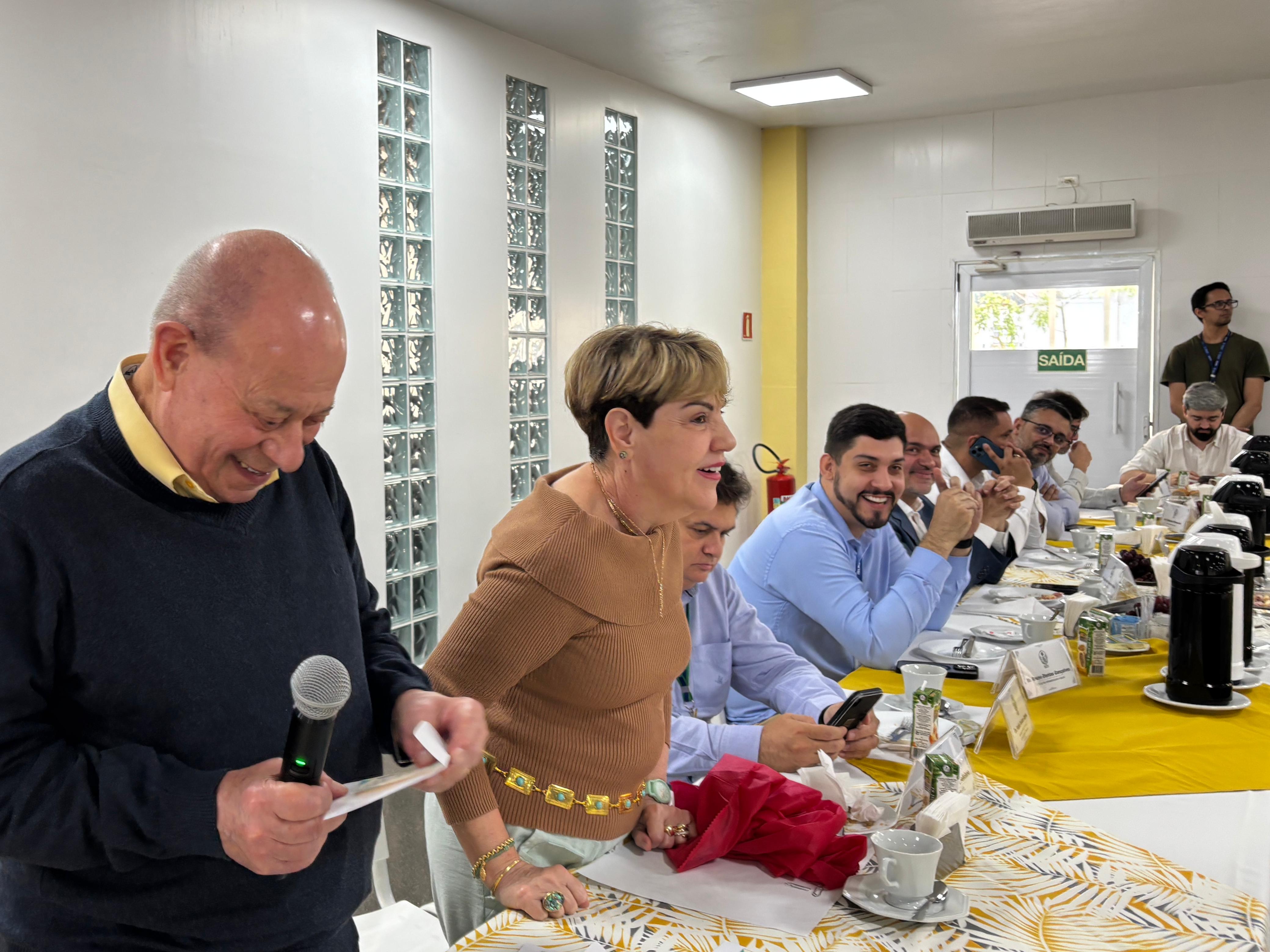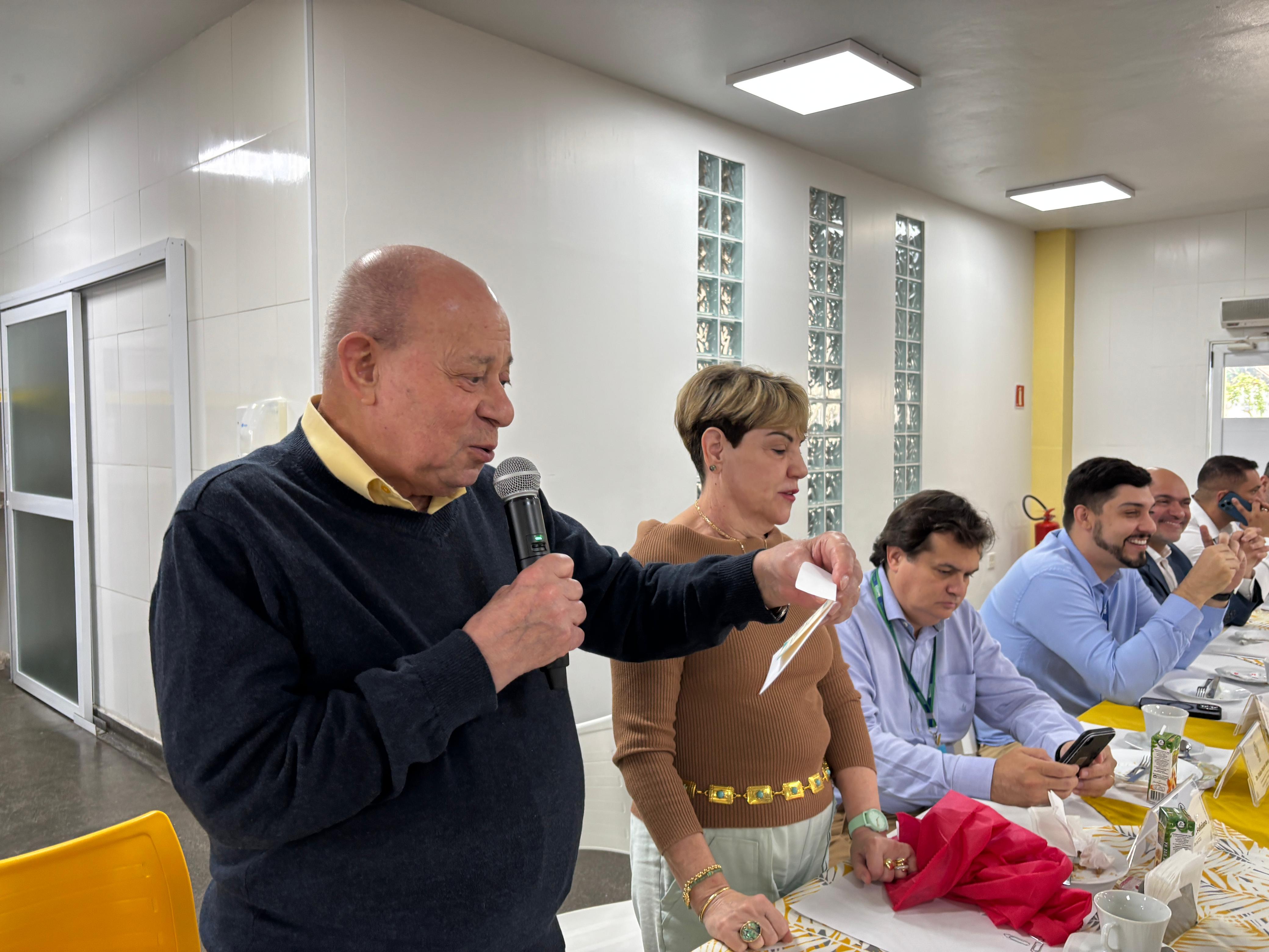 Dando continuidade ao evento, após todos se servirem do farto café da manhã, Ariovaldo Feliciano fez o sorteio de bolos da Lanchonete Santa Isabel e serviços do Recanto da Beleza.