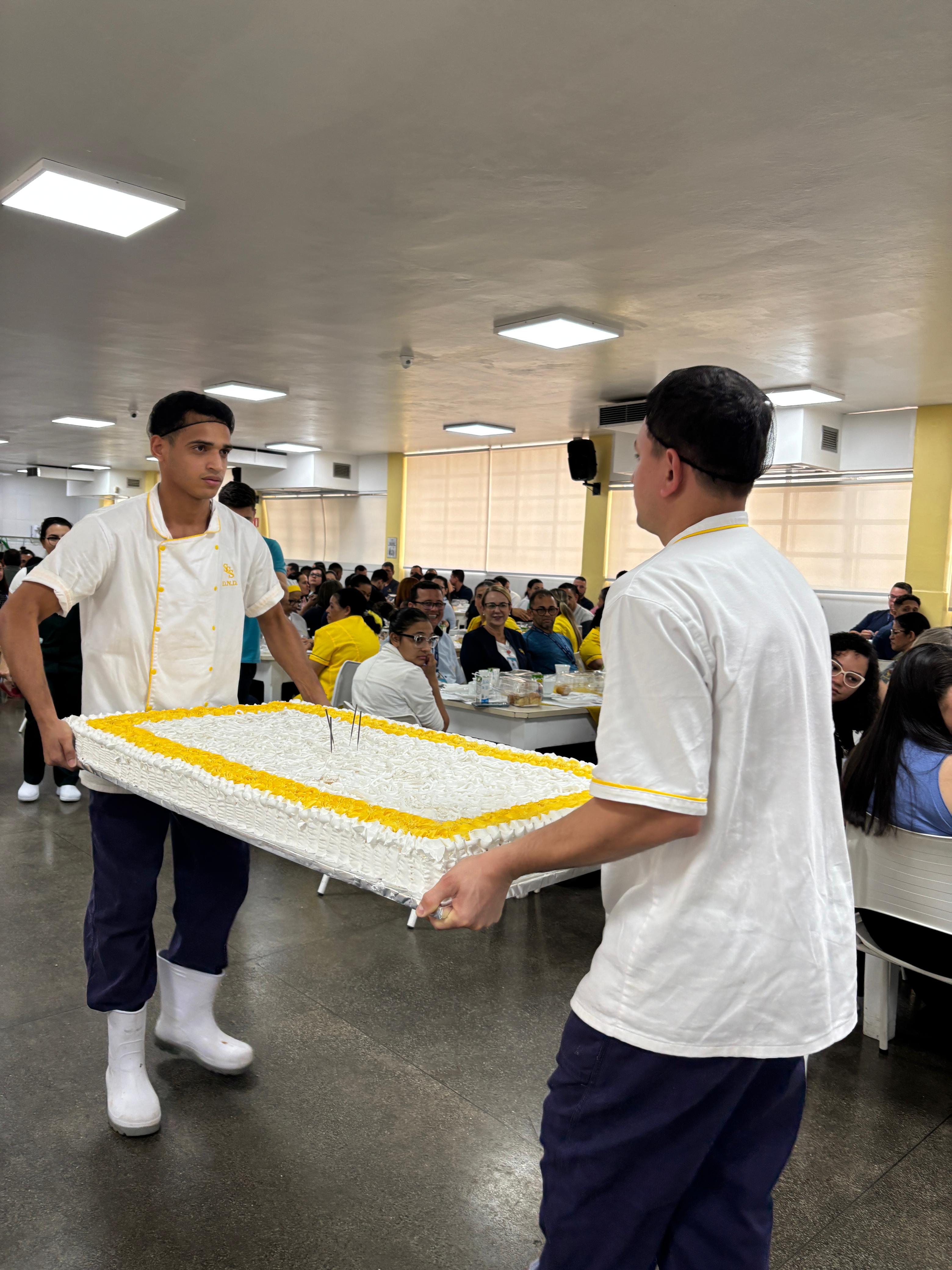O evento foi finalizado com todos cantando o tradicional “Parabéns para você” e a distribuição do bolo confeitado, feito pelo Departamento de Nutrição e Dietética especialmente para os aniversariantes.