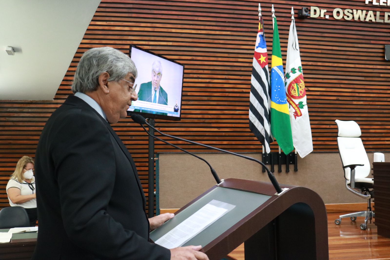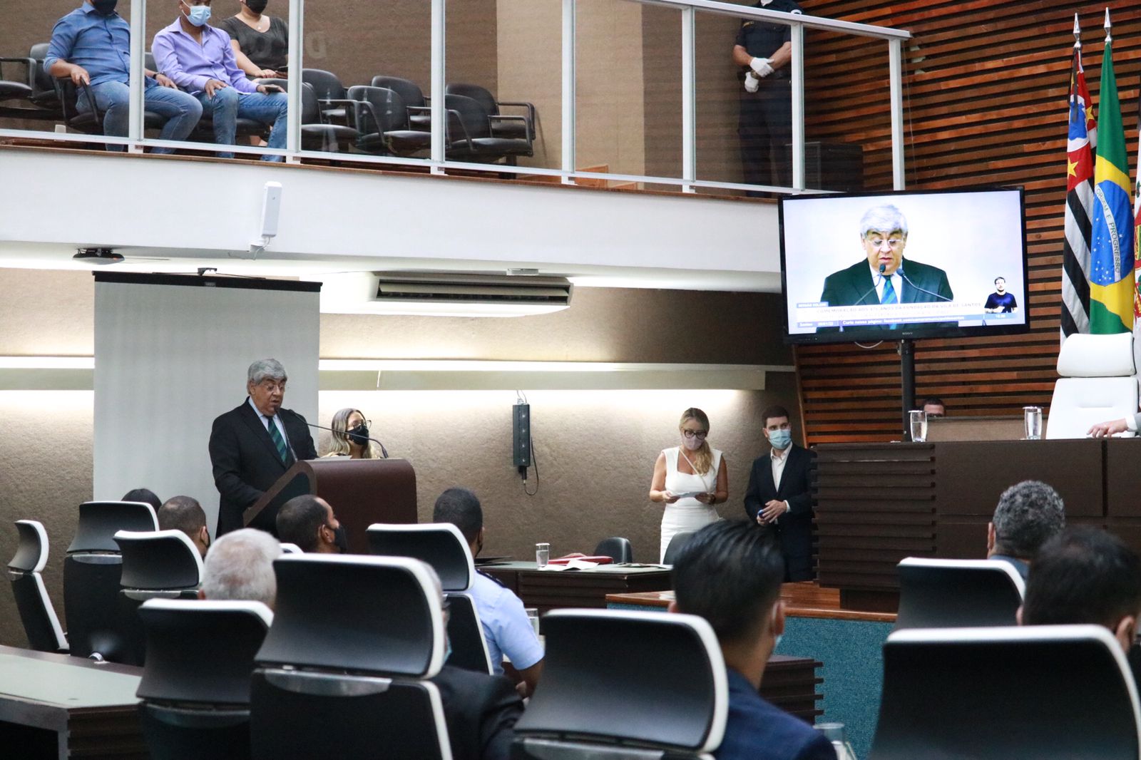 Em solenidade na Câmara Municipal de Santos, o vereador e vice provedor da Santa Casa, Cacá Teixeira, fez o discurso que marcou o início das homenagens que comemoram os 476 anos da cidade, celebrado em 26 de janeiro. O provedor Ariovaldo Feliciano prestigiou o evento.